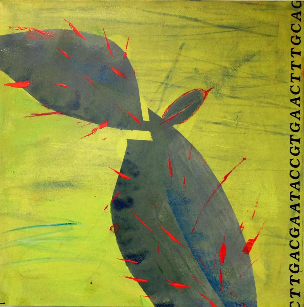 Sue Simon, “Cactus and DNA,” 2023, acrylic on canvas.