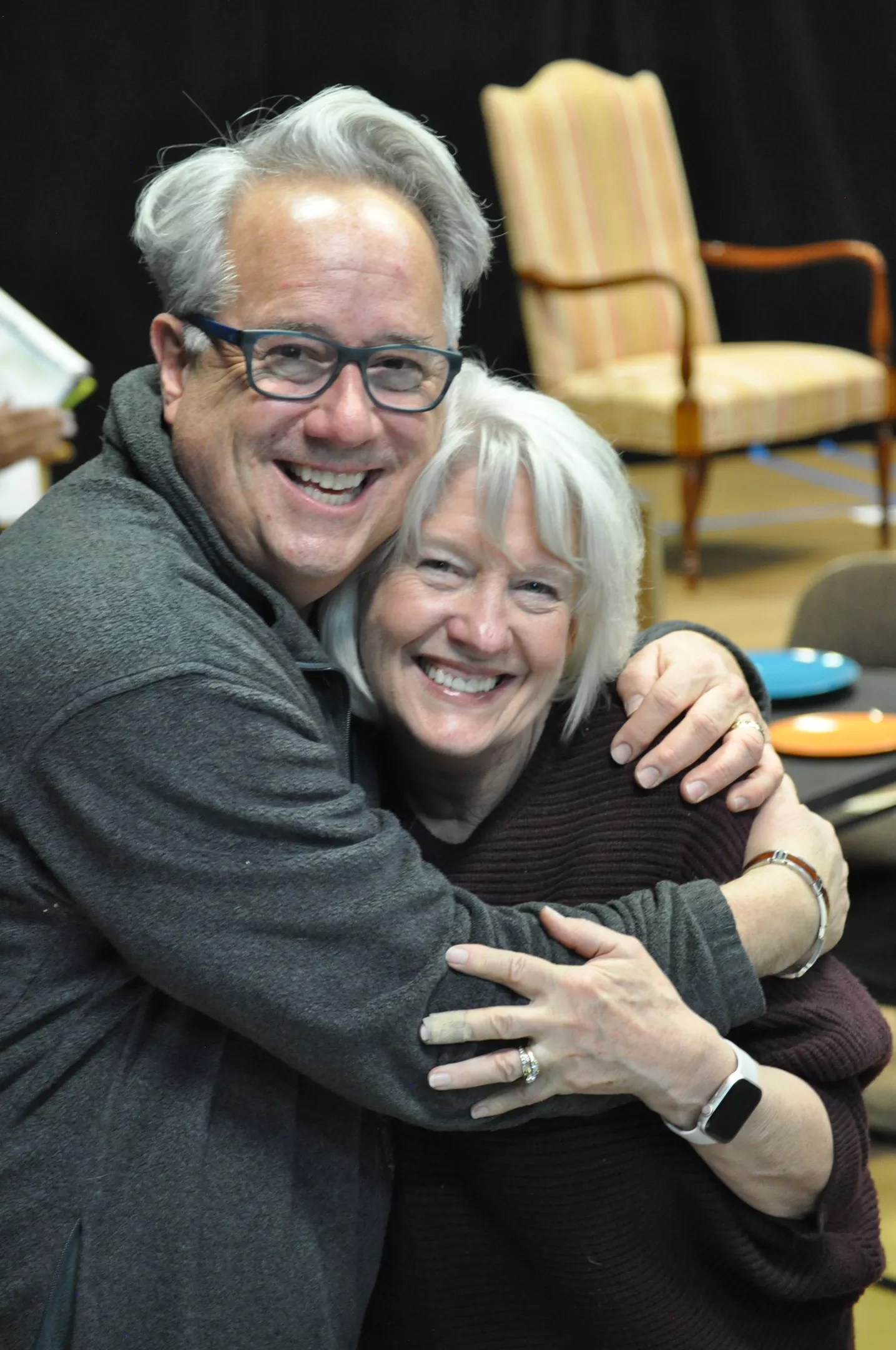 Director Peter Hughes and Firehouse Theater Company board president Helen Hand at rehearsal for Tiny Beautiful Things.
