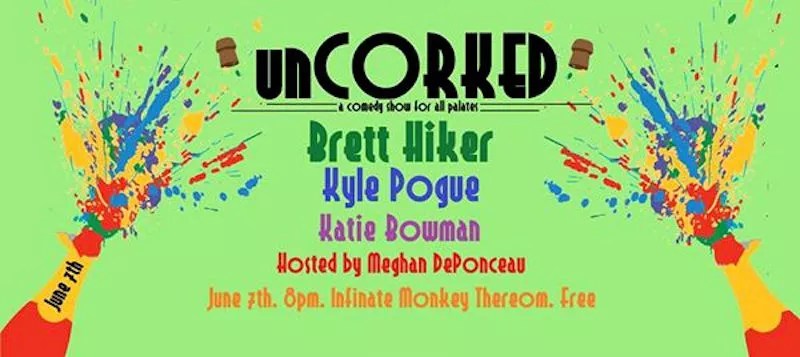 Local comic and trained sommelier Meghan DePonceau has a well-documented fondness for drink; in her dearly missed Amuse Booze showcase and on both sides of bars across the city, DePonceau’s extensive knowledge of wine impresses and charms in equal measure. DePonceau’s latest effort blends standup comedy with wines from Denver’s own Infinite Monkey Theorem Winery, truly a pairing for the ages. Join DePonceau along with Katie Bowman, Kyle Pogue and Brett Hiker, who will crack wise while you crack wines. Admission is free; visit UnCORKED’s Facebook event page to learn more.