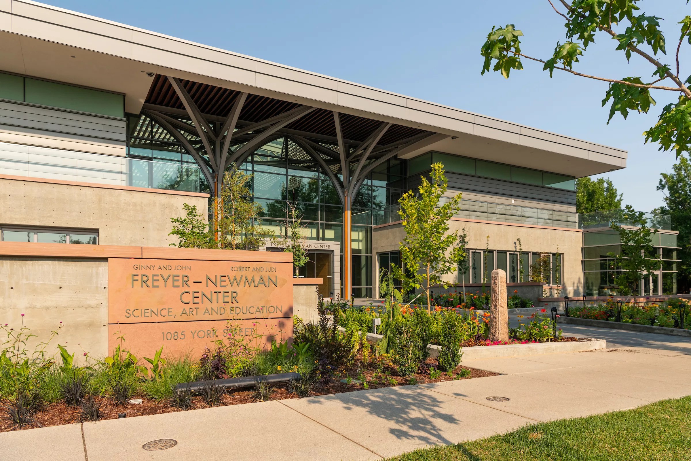 The Freyer-Newman Center boasts its own individual identity while referring back to the original Usonian style of the 1960s campus designed by the late Victor Hornbein. The Usonian philosophy championed the relationship of the building to its site, and it privileged the connections between indoors and outdoors. It was developed in the mid-twentieth century by Frank Lloyd Wright and was his attempt to create a purely American style of architecture, hence “US-onian.” Hornbein was Colorado’s premier proponent of this approach, which he used in some of the original structures at the Gardens and the stunning Ross-Broadway Branch Library at 33 East Bayaud Avenue.