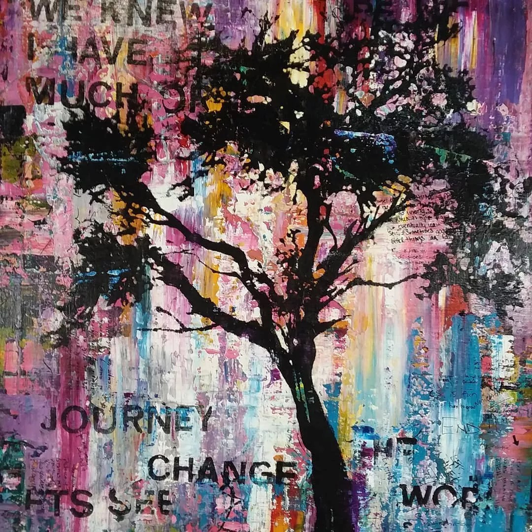 From The Earth Mai Wyn Schantz, “Cloud Stack,” oil on stainless steel. Mai Wyn Schantz