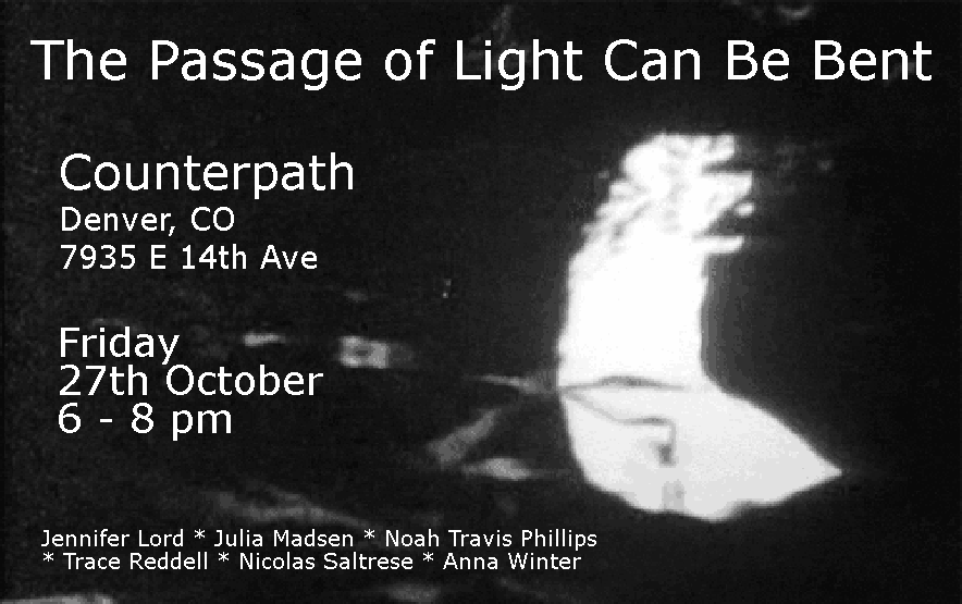 through poetry, art and performance during an avant-garde evening that includes butoh-inspired collage work by Jennifer Lord, autobiographical film by poet Julia Madsen, a multimedia lecture by Noah Travis Phillips, an audio-visual performance by Trace Reddell, and film and video from Nicolas Saltrese and Anna Winter.
