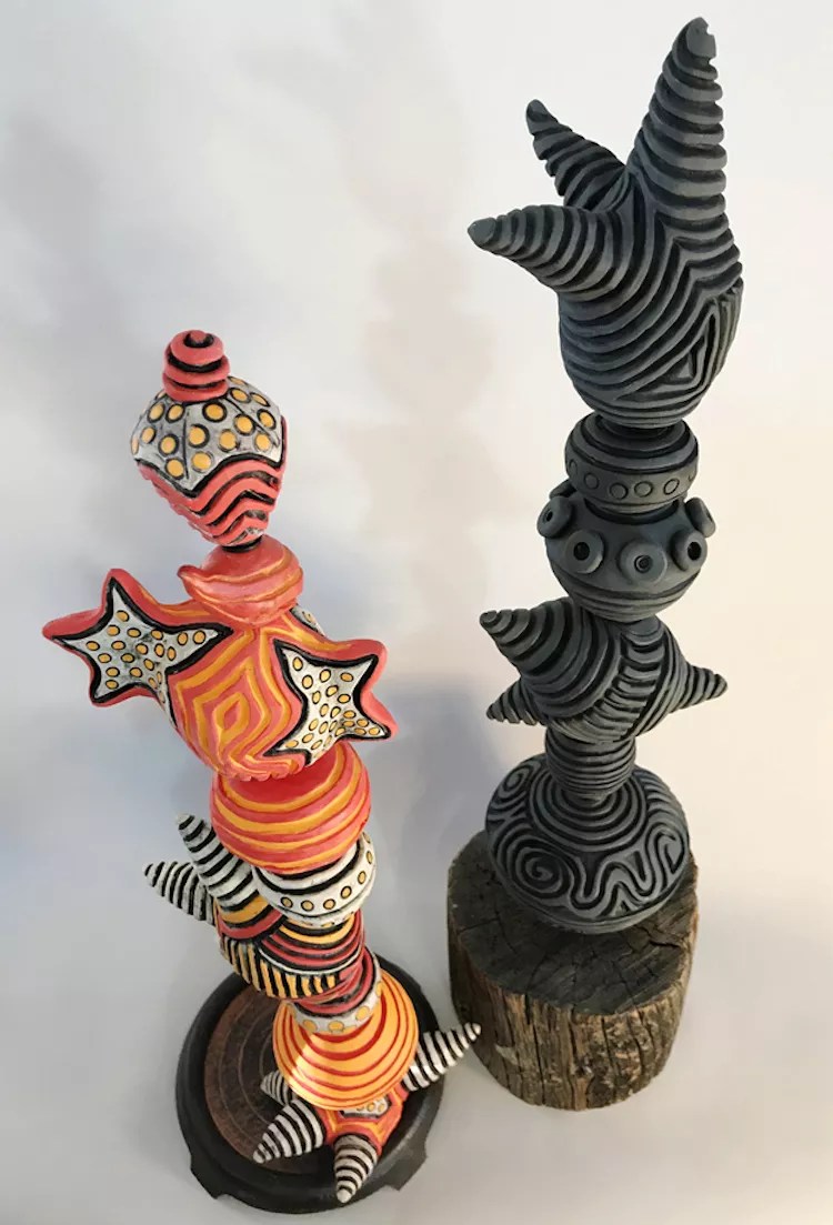 Edge members Gayla Lemke and Mala Setaram-Wolfe show ceramic and mixed-media fiber work through the end of the month. Many of Lemke’s clay towers and prints echo pop lyrics from the ’60s, while Setaram-Wolfe and friends explore the metaphor of “mending” though fiber art.