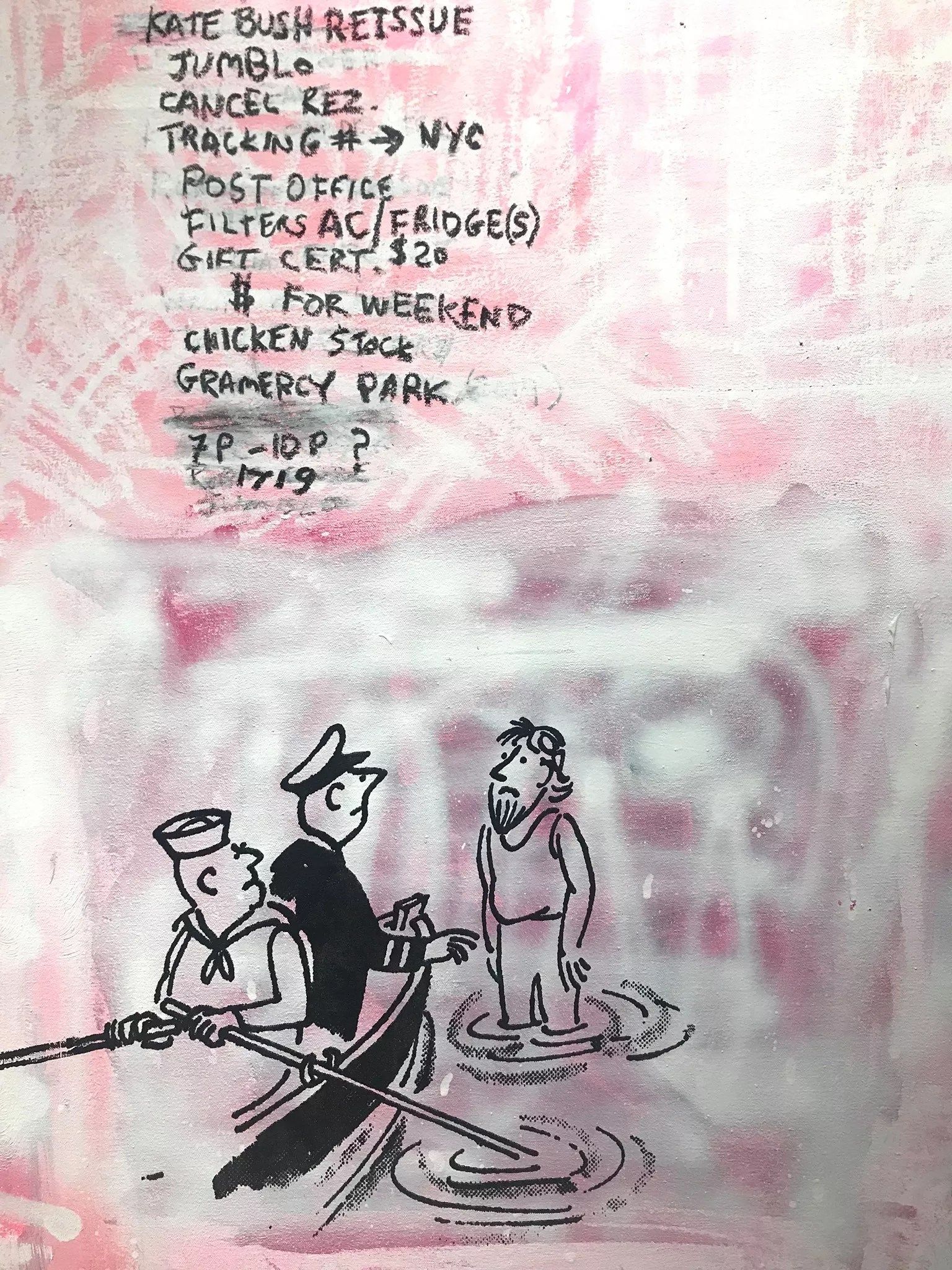 To call the work of Rick C. Riggans a mixture of pop-art imagery, handwritten personal text and cartoons doesn’t quite do it justice, but suffice it to say, its cryptic message about everyday superficiality and the downward spiral of American life is palpable.