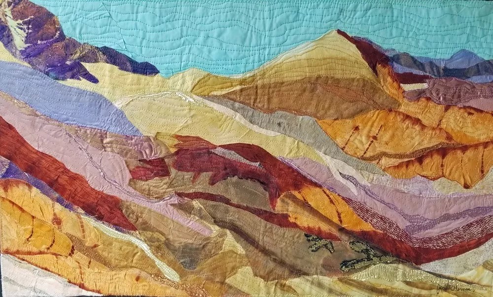 Fiber artist Jean Herman brings a new batch of quilted landscapes to Sync, while Cody Day’s paintings jump off the landscape wagon for more abstract adventures. Both artists are keen on color in shaping their separate visions.