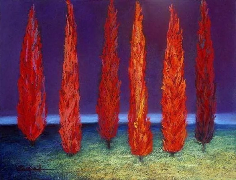Mariya Zvonkovich, “Red Cypresses Six.”