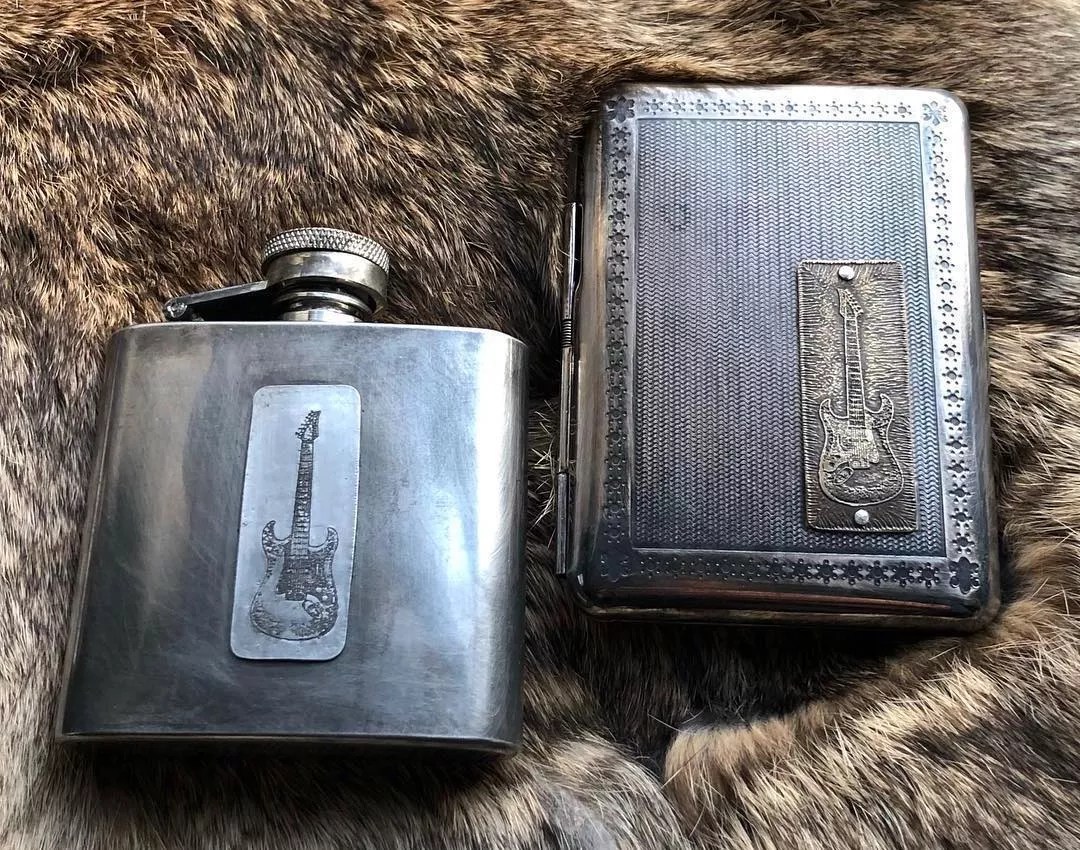 Nab a Jane Roberti hand-etched metal flask or wallet for your favorite guy at the Firefly.