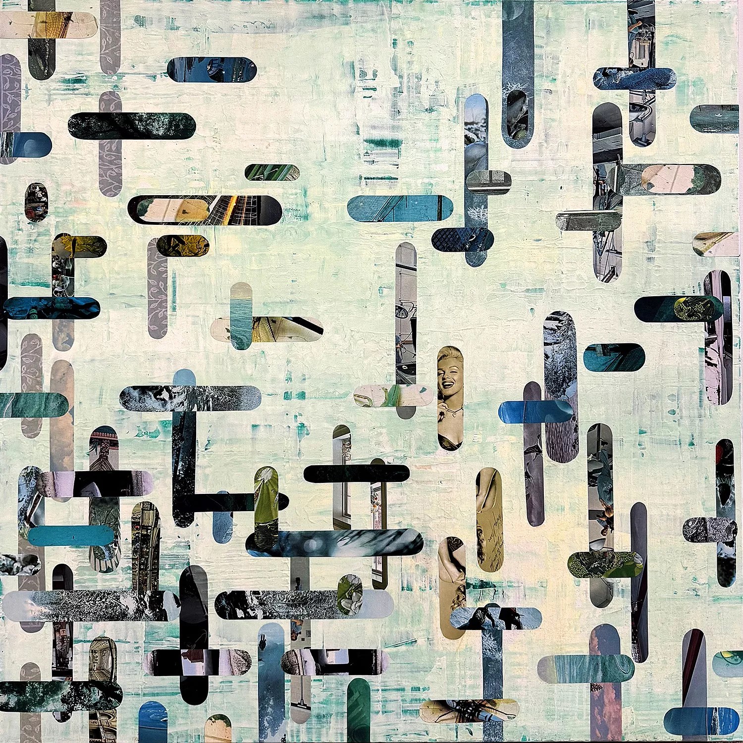 Deborah Carlson, Alanna Peters and Benjamin Stanford, Surface Tensions Doug Haeussner, “Subconscious Soul,” multimedia collage, National Geographic Magazine cutouts and acrylic on canvas. Doug Haeussner, courtesy Walker Fine Art