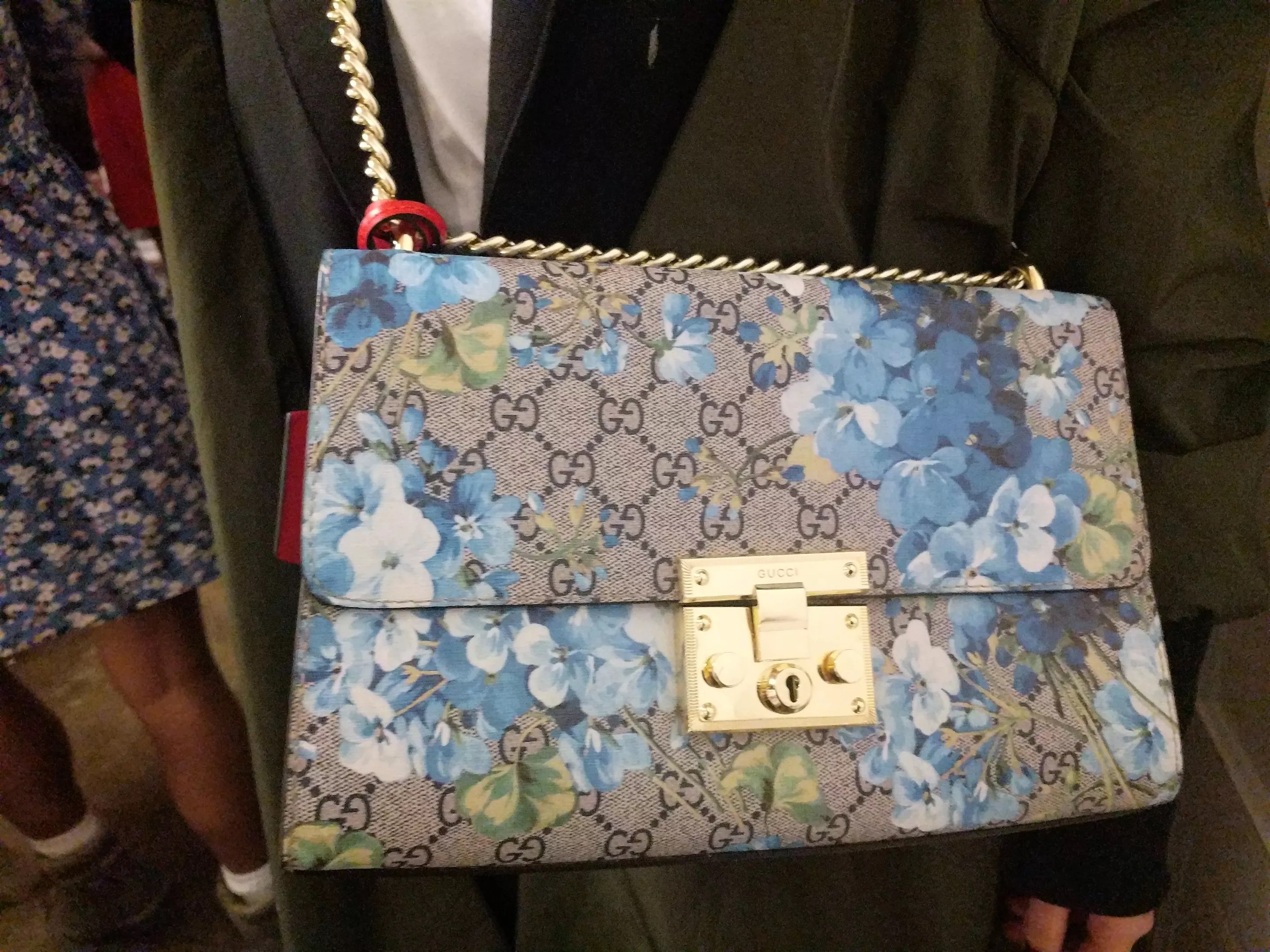 Nguyen wears a monogrammed, painted Gucci purse borrowed from her mother, “because she never wears it.”