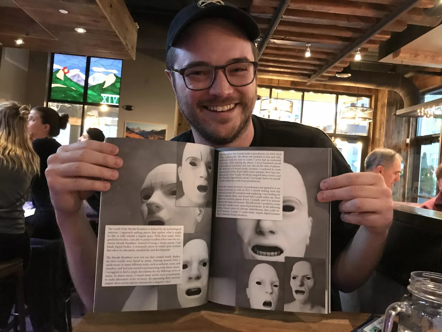 Ryan Wurst shows off his dissertation booklet at the bar.