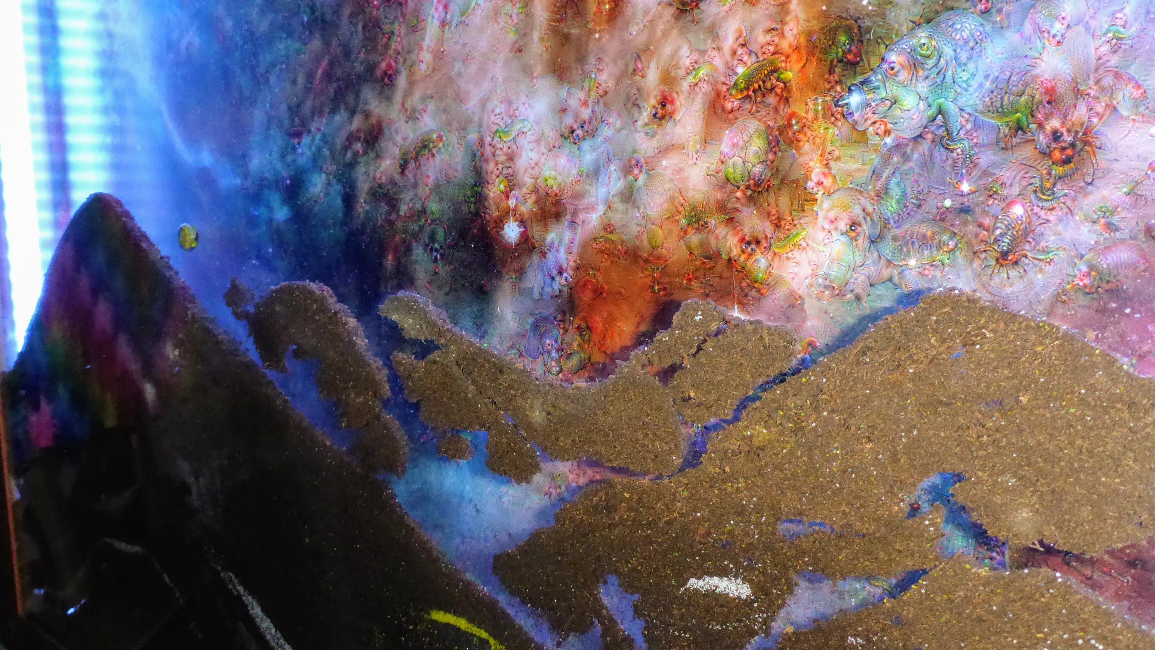 A close-up of one of Lemanski’s ant spaces. For this background, he fed a hi-res image of the Carina Nebula into Google’s DeepDream program, which imitates the neural network and visual cortex.