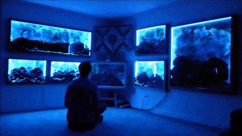 Some things about these artistic ant habitats – like adding tiny plant seeds or setting the colors of the LEDs, which Lemanksi controls from a dial on a mobile app – are within his control. Others, like the tiny ant graveyard that he points out, or the ways in which the colored sand streaks as the insects tunnel, are not.