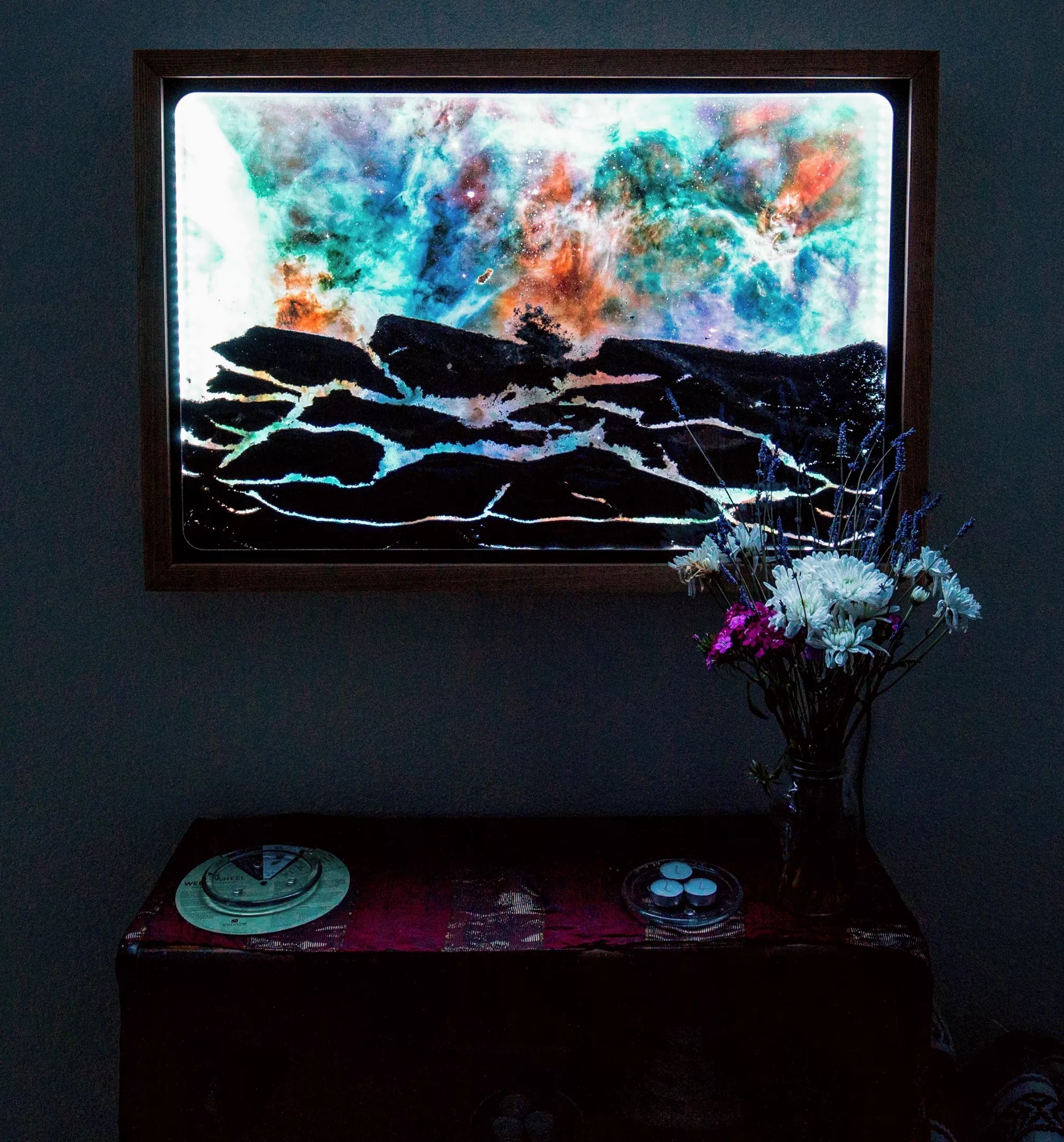 There are more than 1,000 ants in the Boulder basement art gallery where Jacob Lemanski sits cross-legged, explaining how he got from biking across continents to building ant farms. All four walls of the room host what Lemanski calls Ant Spaces: thin layers of soil and brightly-hued sand set between glass and illuminated by LEDs that change color. The ants tunnel through the soil, creating slowly-shifting patterns in the dirt to reveal the background image of the Carina Nebula. In a word, it’s mesmerizing.