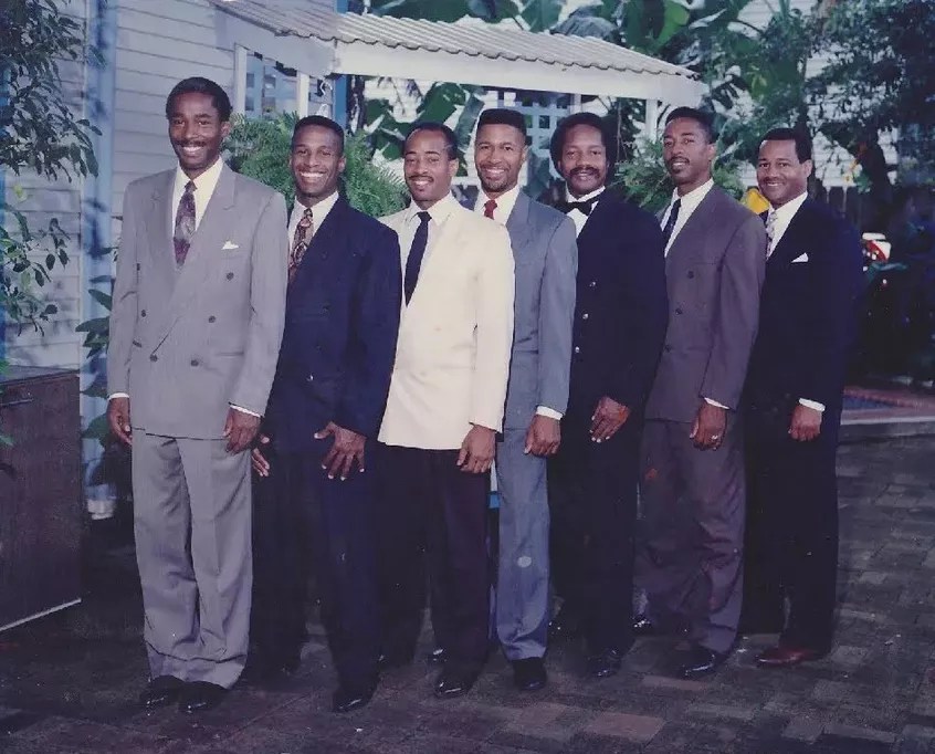 The seven Batiste brothers: Thomas (from left), James, Peter, Michael, Paul, David and John Jr.