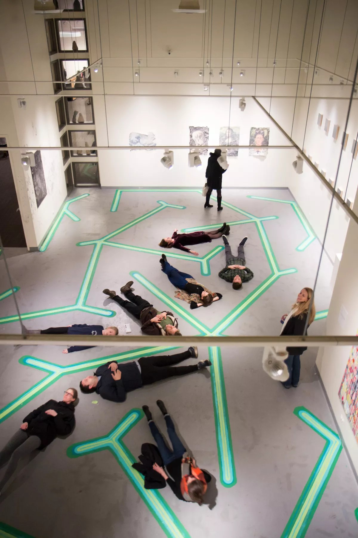 A curious gallery patron tries out Sean Faling’s interactive installation at the Dairy.