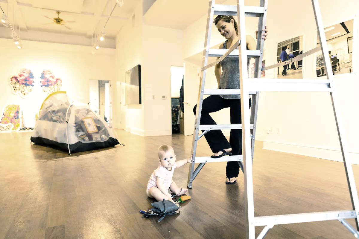 Parker installs a show at the Firehouse with a little help from her son.