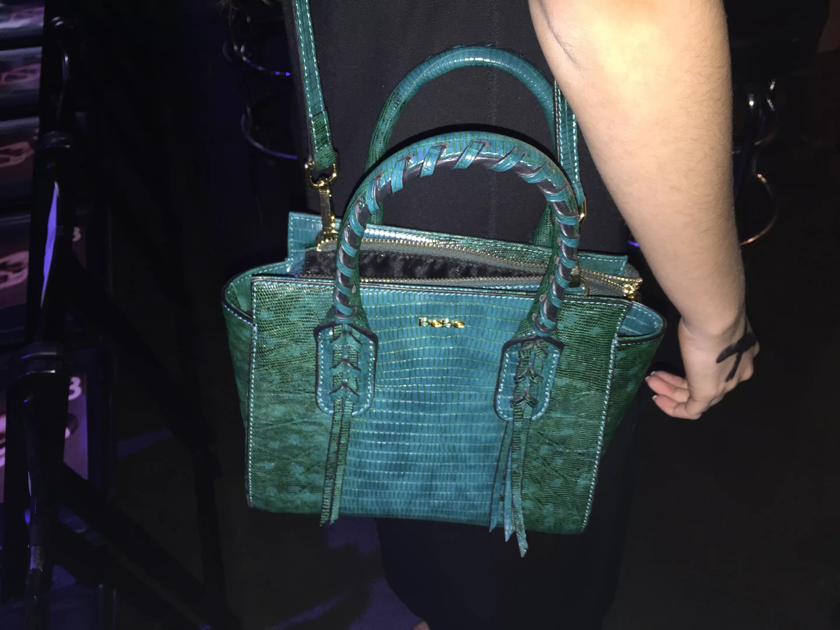 This turquoise python purse is from Bebe, one of Ramer’s favorite stores.