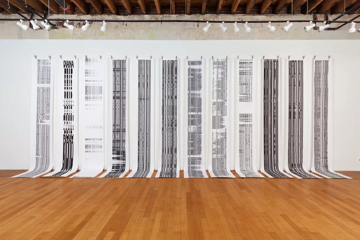 Joel Swanson is one of the region’s top conceptual artists. Not only is his work relentlessly intelligent, but it’s also relentlessly beautiful, as seen in Joel Swanson: Sticks & Stones at David B. Smith Gallery. Swanson’s longtime focus has been the meanings and physical properties of words, including familiar phrases and clichés. “Headline Slit Scans Series,” by Joel Swanson,