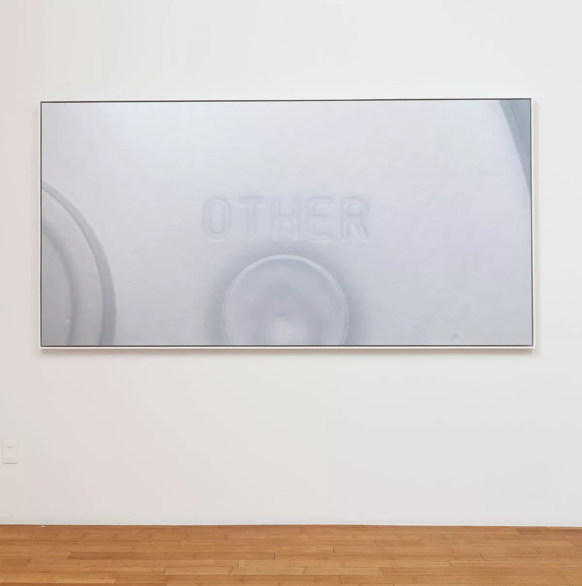 Other pieces are more enigmatic. For the three-part “Marginalized Ways of Speaking,” Swanson created written expressions of lisping, mumbling and stuttering by covering sheets of paper with repeated lines of black vinyl label tape that spell out these ordinarily aural experiences. A few of the works seem to have personal content, which is unusual for an artist interested in conveying the universal. A pair of plastic swirls are 3D-printed renditions of the audio of his parents saying “sticks and stones,” providing the exhibit’s title piece. The striking photo-mural “Soda Lid” shows a familiar plastic drink lid from a convenience store; by zeroing in on the raised dimple labeled “other,” Swanson makes an existential statement. “Soda Lid,” by Joel Swanson, lightjet print. Wes Magyar