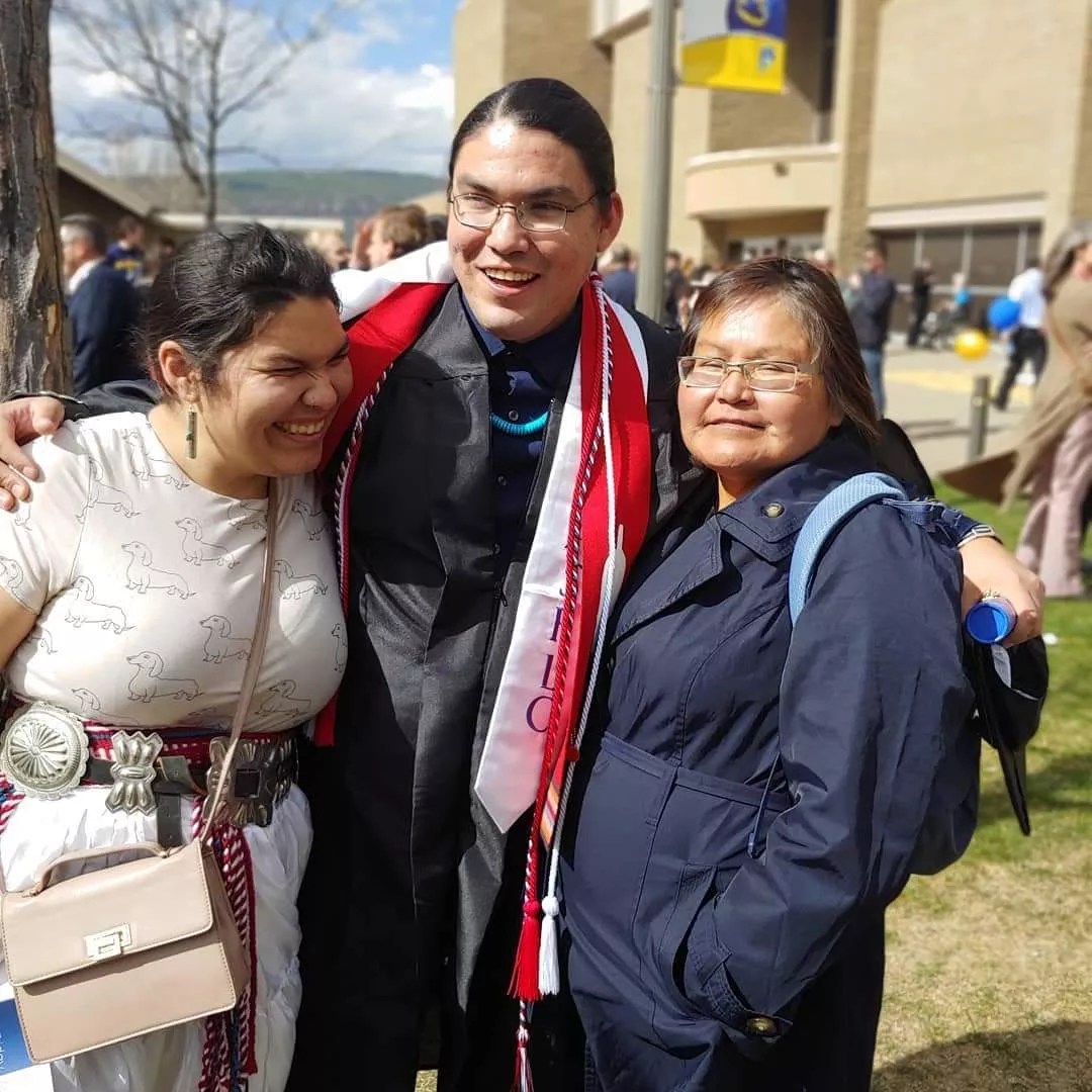 Emerson at his graduation with his mother and sister.