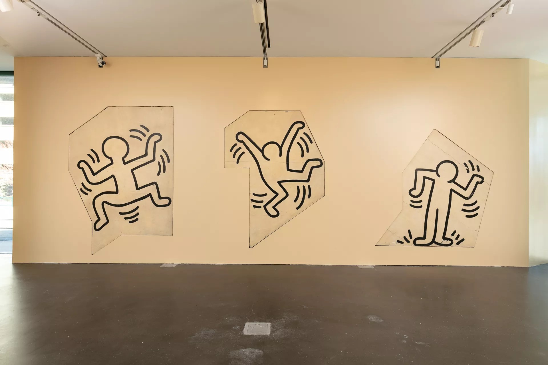 Dancing couple, falling man from Keith Haring’s Grace House mural. Paint on painted concrete block.