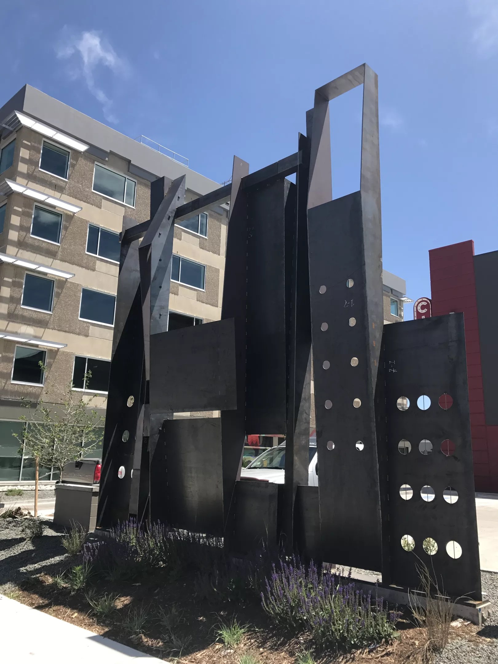 Walk toward the Sloan’s Lake Alamo Drafthouse from the parking structure on Conejos Place, and you can’t miss the angular sculpture built with intersecting planks of steel, beckoning moviegoers toward the sidewalk that leads to the theater. This work, which will be officially dedicated on June 30, is called “Deconstructed Screen,” and it’s the latest public art commission from local artist Kelton Osborn, built especially for the Drafthouse and this neighborhood.
