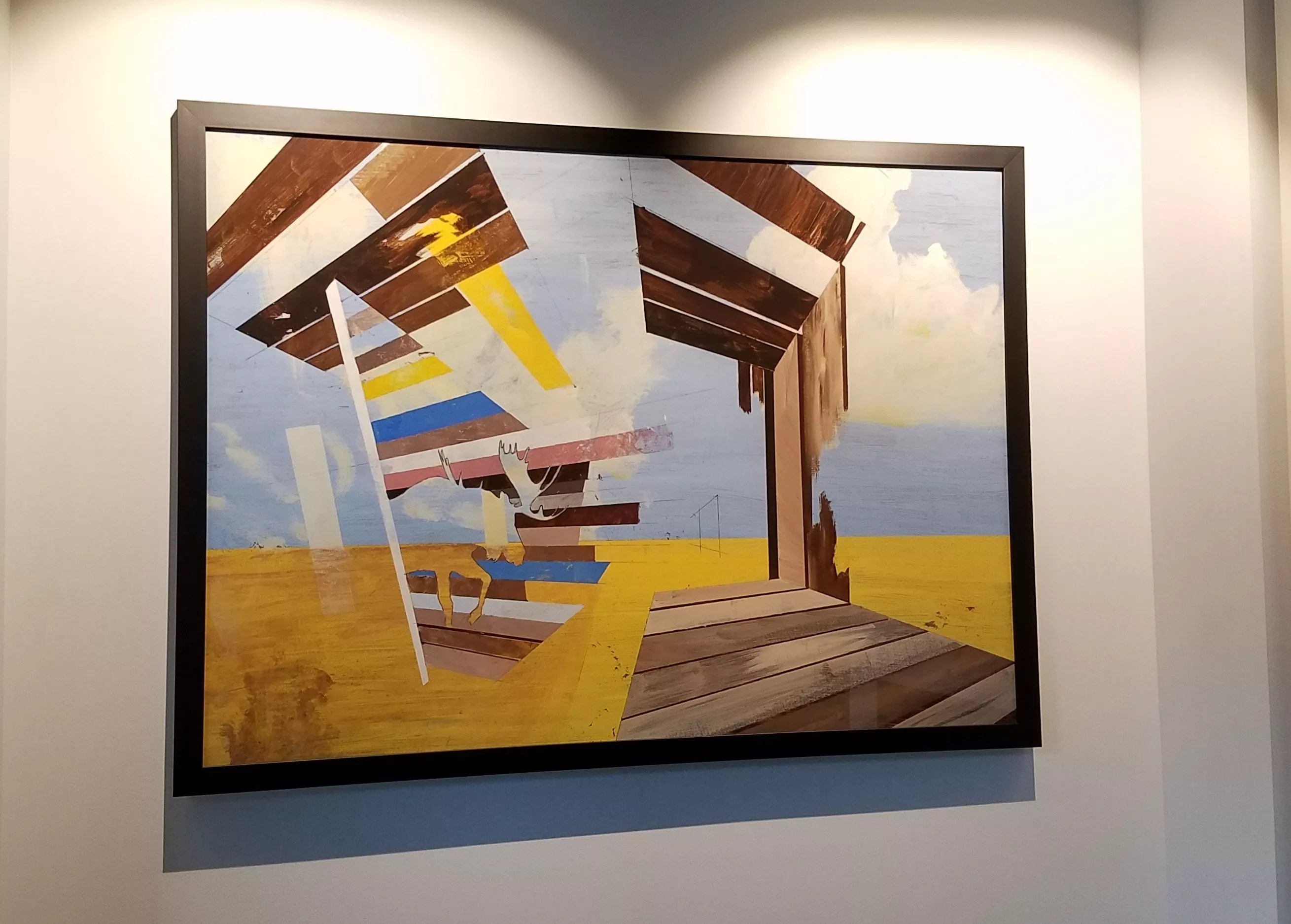 Now that the art is hung, the hotel is focusing on getting its doors open. After that, plans call for creating an art tour – either self-guided or led by one of the staff – as well as possible artist talks. And there will be plenty to see; the surrounding Diary Block will also be filled with art. Travis Hetman’s “Sun Mountain.” Linnea Covington