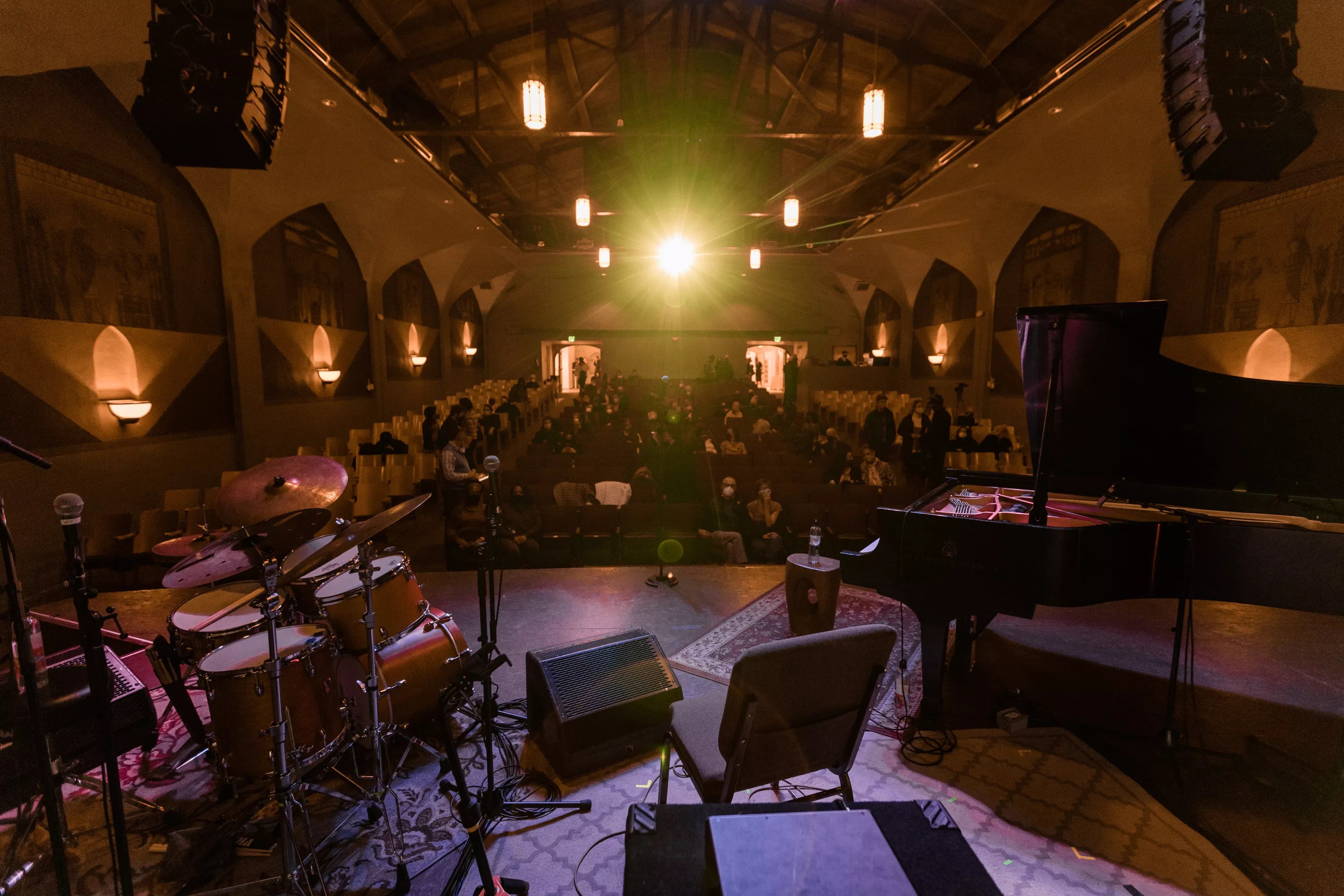 A significant amount of original detail remains from the old Egyptian Theater decor, uncovered by some restoration work in the early 2000s. Workers back then found decorated alcoves and plasterwork hidden by renovations in the ’50s, and thereby preserved over the decades. Abrams says the MCA is committed to respecting and celebrating that history.