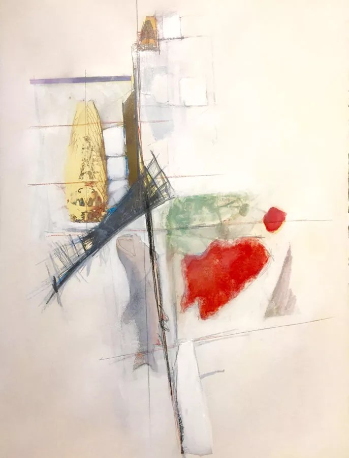 Osborn lives in Denver but grew up in Pueblo, and he’s said that his aesthetic was influenced by having old industrial buildings as part of his earliest visual memories. That’s evident in the sculptures made of colorful bits of debris in the form of cardboard and string, as well as in the appropriated imagery on cut-up photos and prints. The sculptures, which are essentially vertical piles of colliding planar shapes, reminded me of a cross between Russian constructivism and arte povera, and they really worked. The mixed-media pieces on paper are different, with a dominant geometric abstraction floating on top of representational images done in photo transfers that come out vaporous and ghostly, thus appearing to recede behind the abstraction.