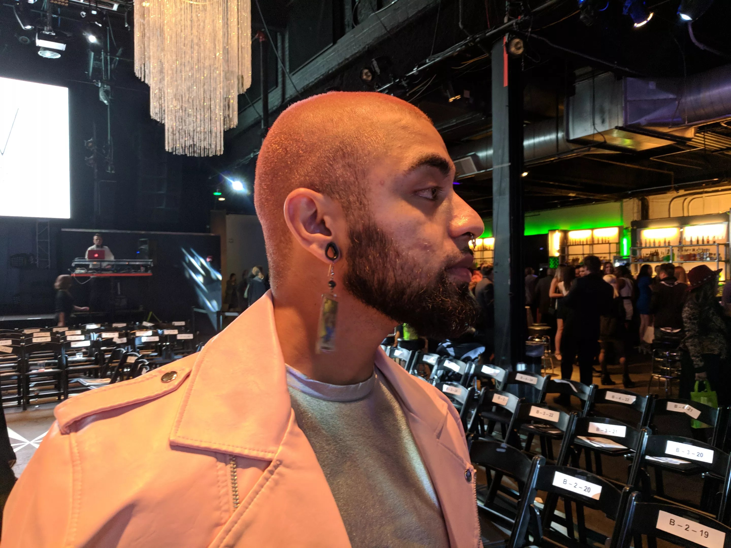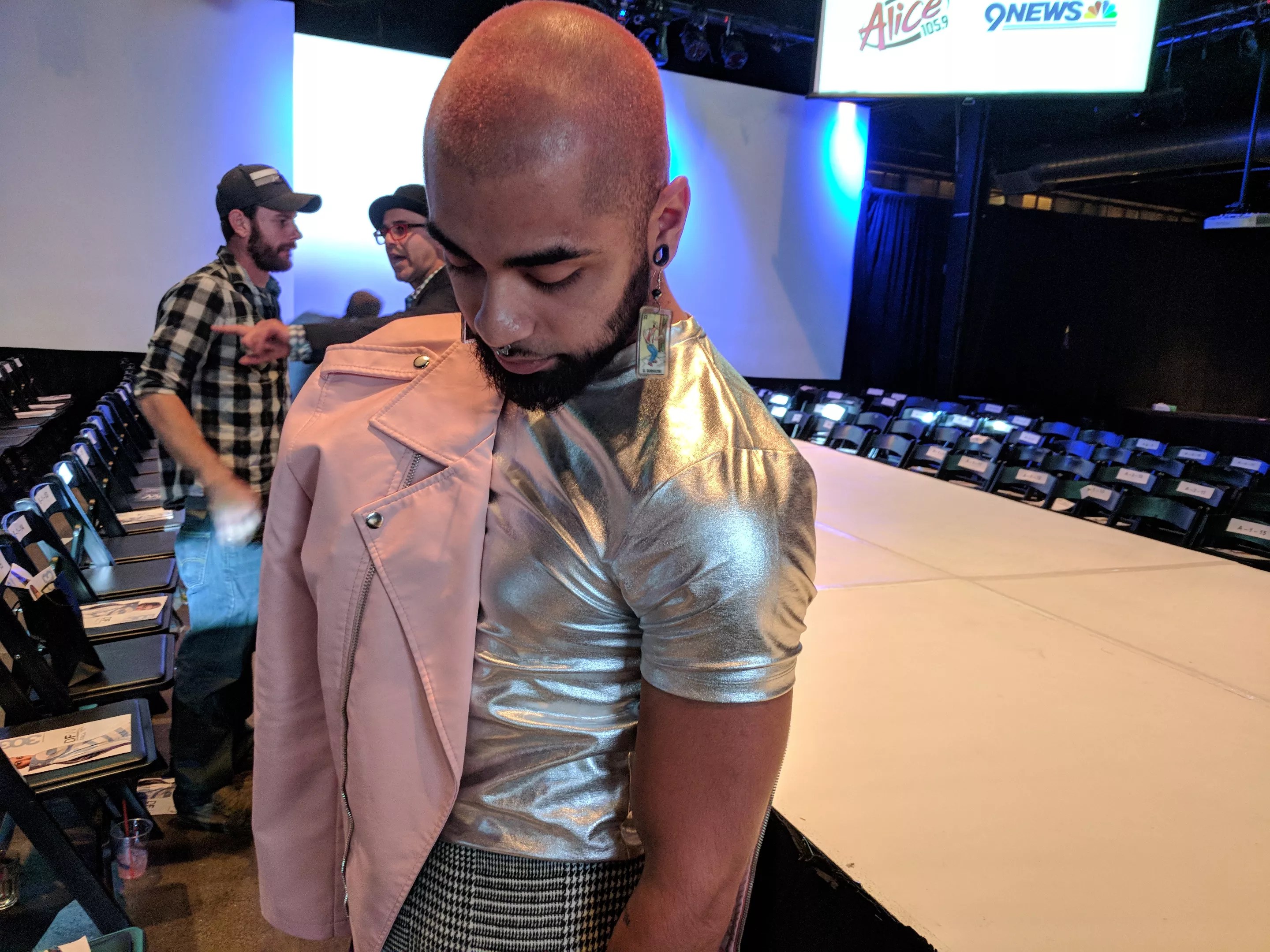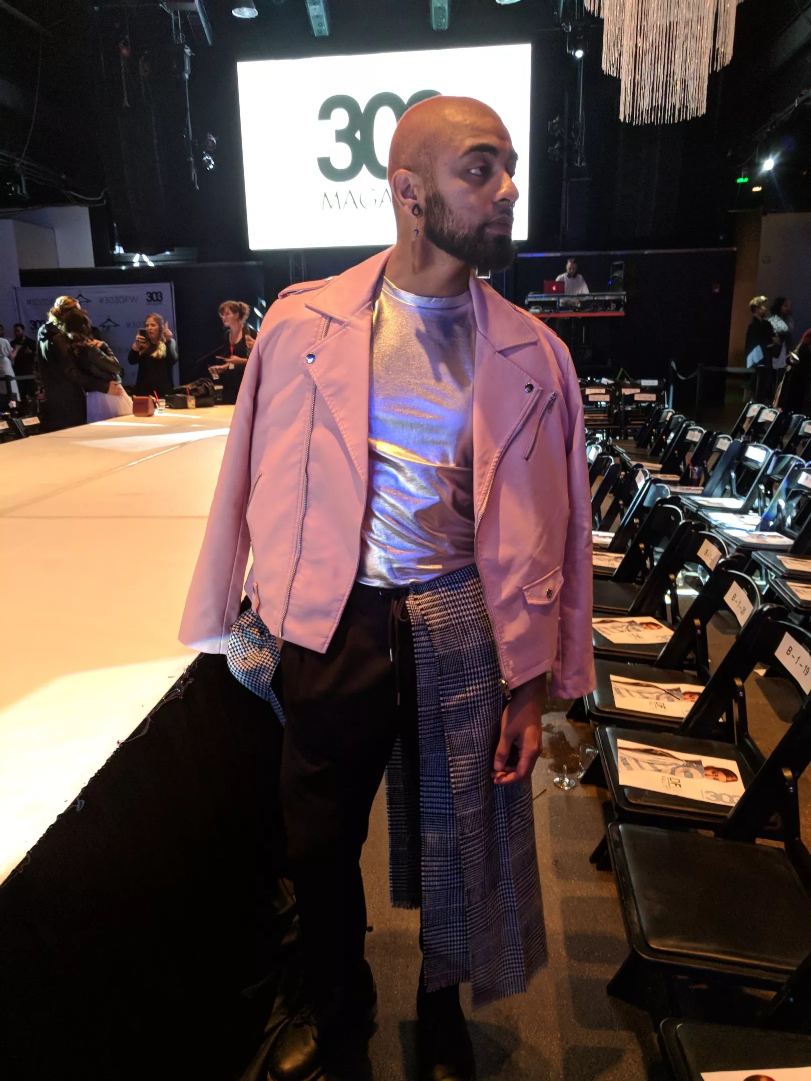 From November 9 through November 12, 303 Magazine put on a string of three fashion shows, in the seasonal social offering that is Denver Fashion Weekend. While the fashion on the runway was nothing short of amazing, there was great style off the runway as well. One standout ensemble came courtesy of local performer, model and creative Stephen Garcia, who loves pink and made it work during night one of the fashion shows. We spoke with him to learn what inspires him and how he concocted this eye-grabbing look. This silver shirt was a gift from Garcia’s boyfriend. Photo by Mauricio Rocha