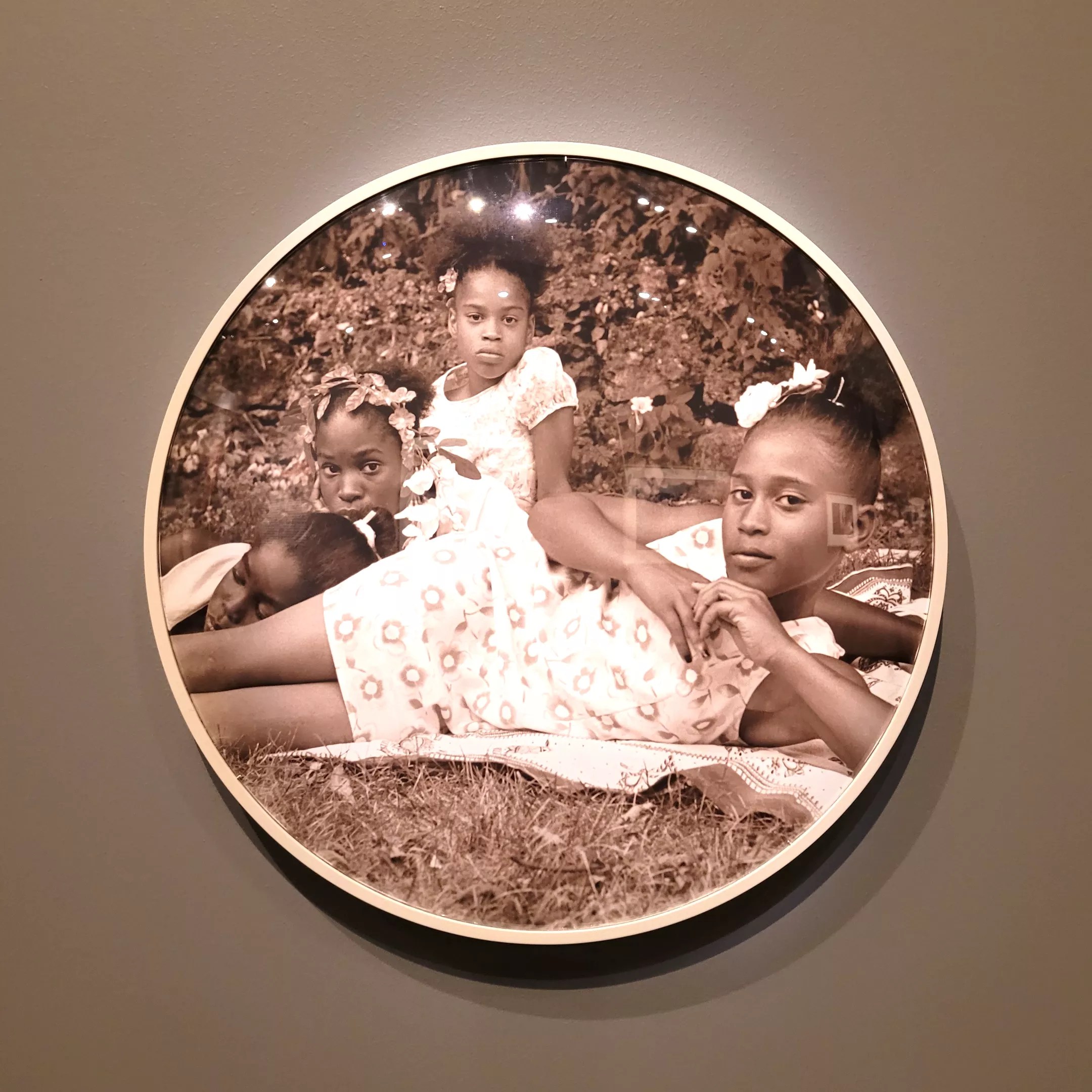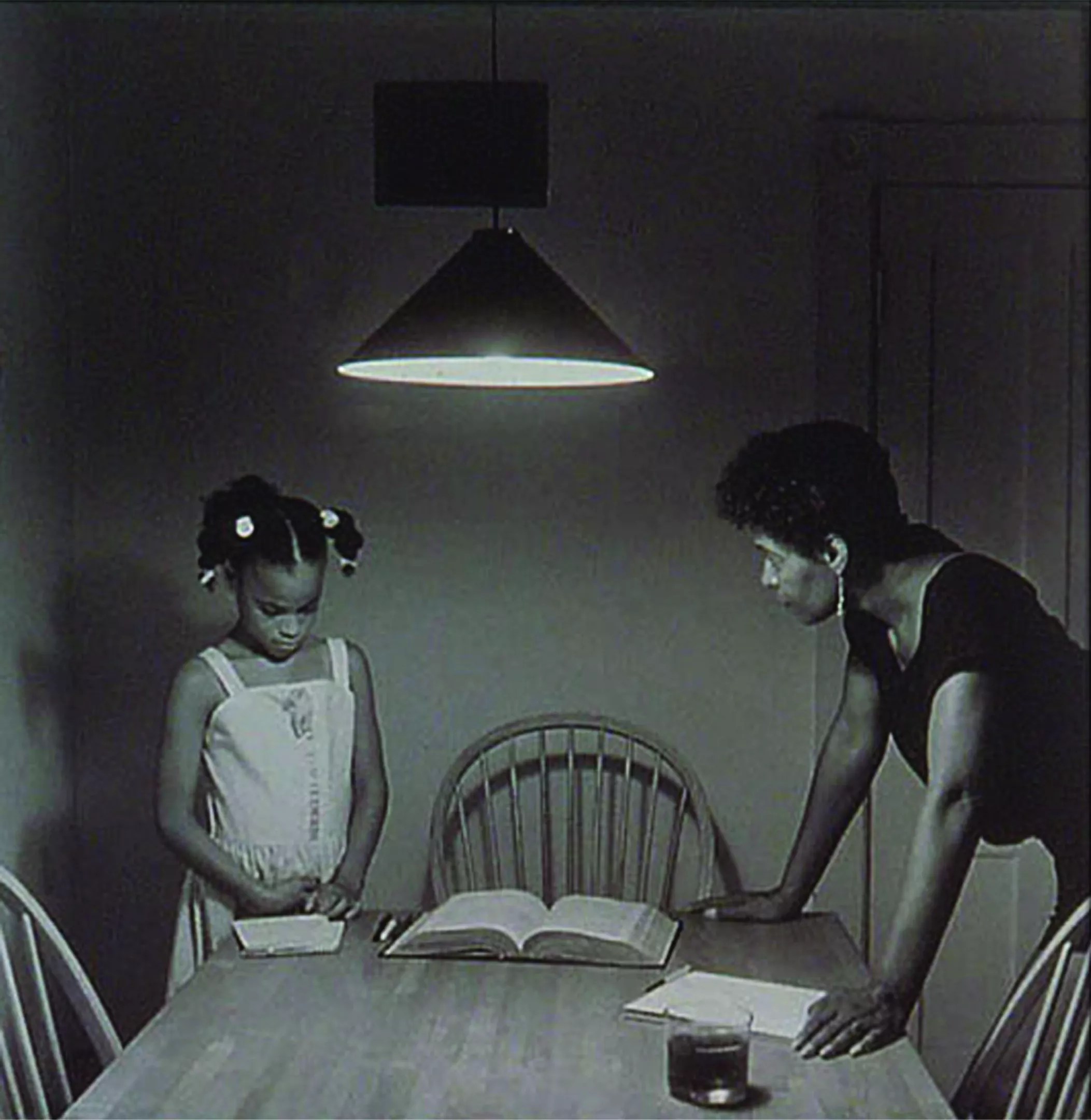 Also among the modern-day works in this exhibit are two photographs by Carrie Mae Weems: “After Manet” (2002) and “Untitled (Woman With Daughter)” (1990). The latter is part of a powerfully intimate series called the Kitchen Table Series, of which Roberts says, “It’s kind of this theater of the human experience, of everyday life [and] the things that go on in a house around a kitchen table. These are all kind of performed for the camera in this very familiar space, and so I think it’s a very relatable series.”