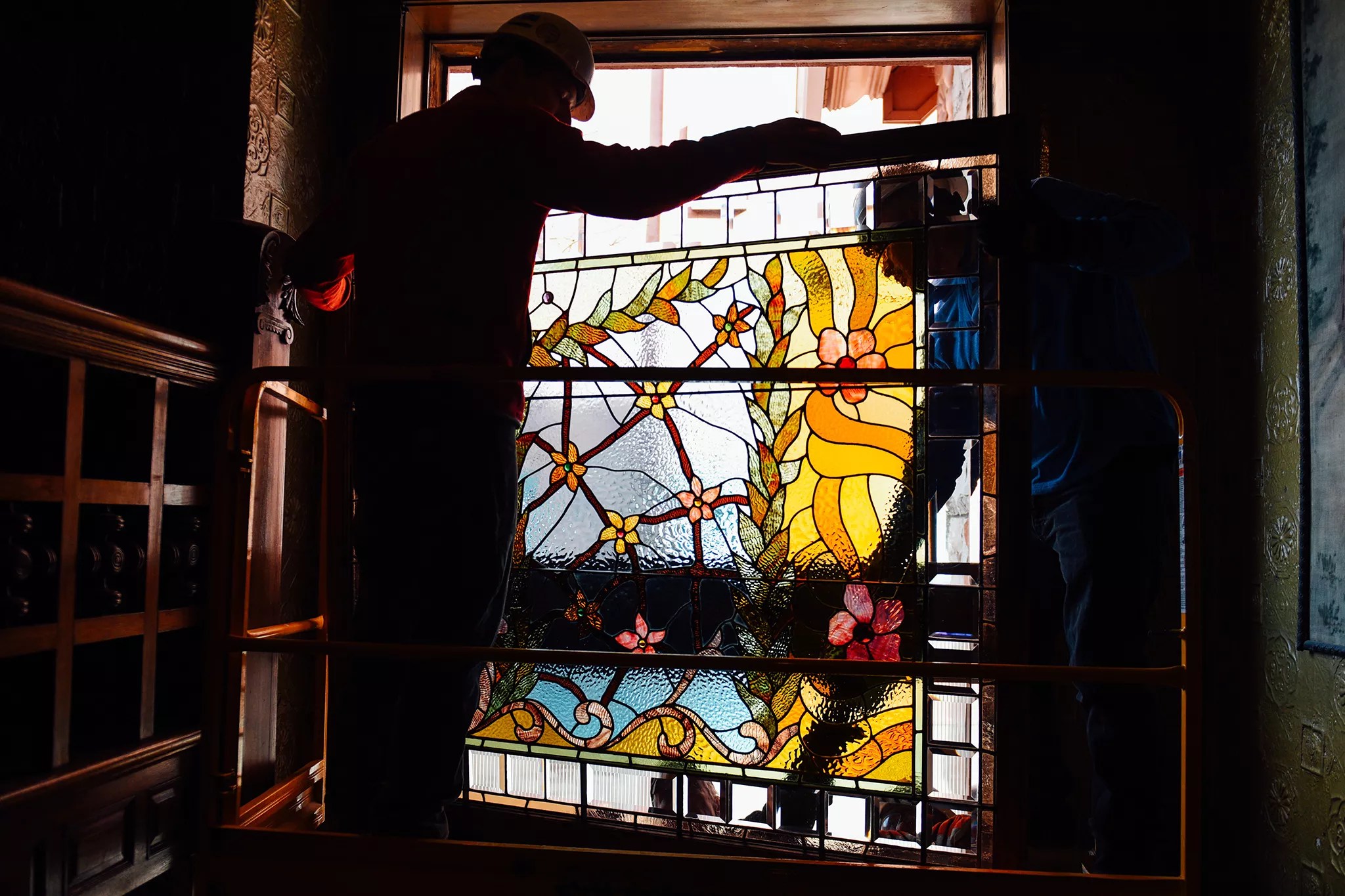 It’s not easy maintaining a circa 1889 landmark, a fourteen-room mansion built by architect William Lang that was once home to Margaret Tobin Brown. What’s today known as the Molly Brown House Museum is undergoing a $1 million restoration, which includes the restoration of the large, historic stained-glass windows in the entry staircase.