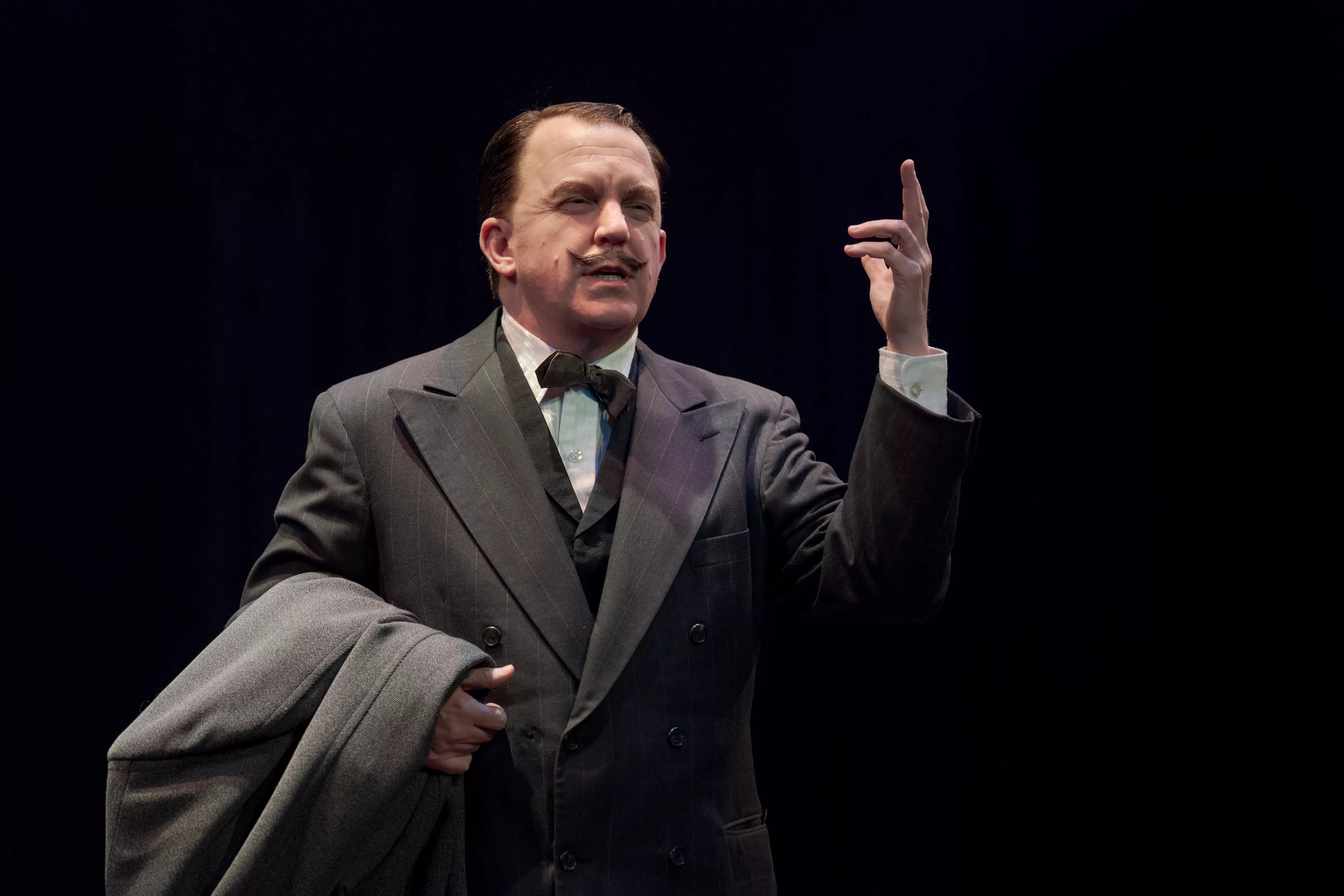 At the beginning of the play, a little girl is abducted by a murderer – which seems a grim beginning to a comically lighthearted play, though the silhouette of the approaching killer is a villainous-looking cartoon shape that tells us not to take things too seriously. After this, we’re introduced to the well-known sleuth Hercule Poirot. He’s in an Instanbul hotel, anxious to catch the luxurious Orient Express back to London, where he’s wanted on a case. From here, all the action takes place on the train, which gets stuck behind a giant snowdrift.