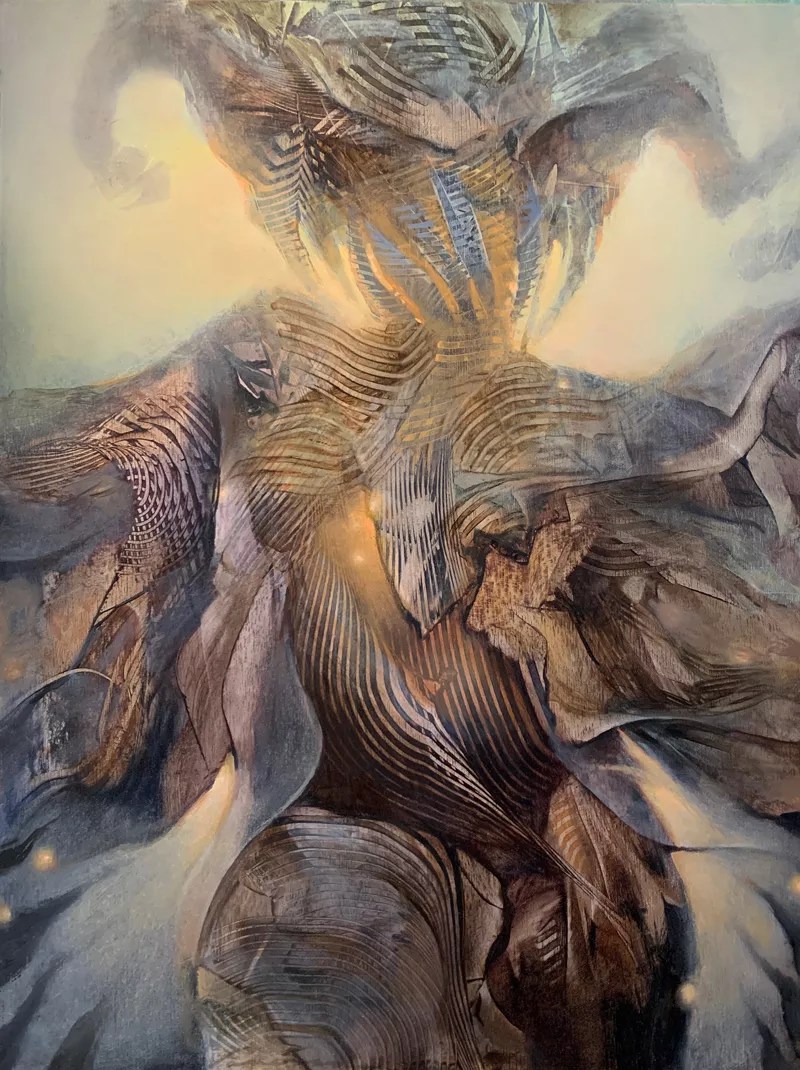 Vanessa Lemen, a deft fantasy painter who makes her solo debut in Denver with Bloom, brings figures to life with her paintbrush, swirling between dimensions in subtle earthy and metallic colors.