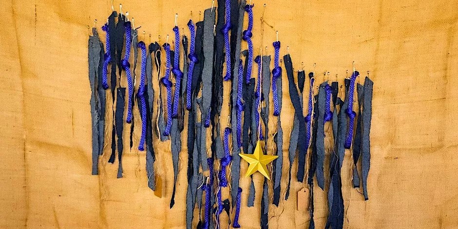 Chloe Duplessis, “1877,” 2023, fiber and ancestral fabric on burlap.
