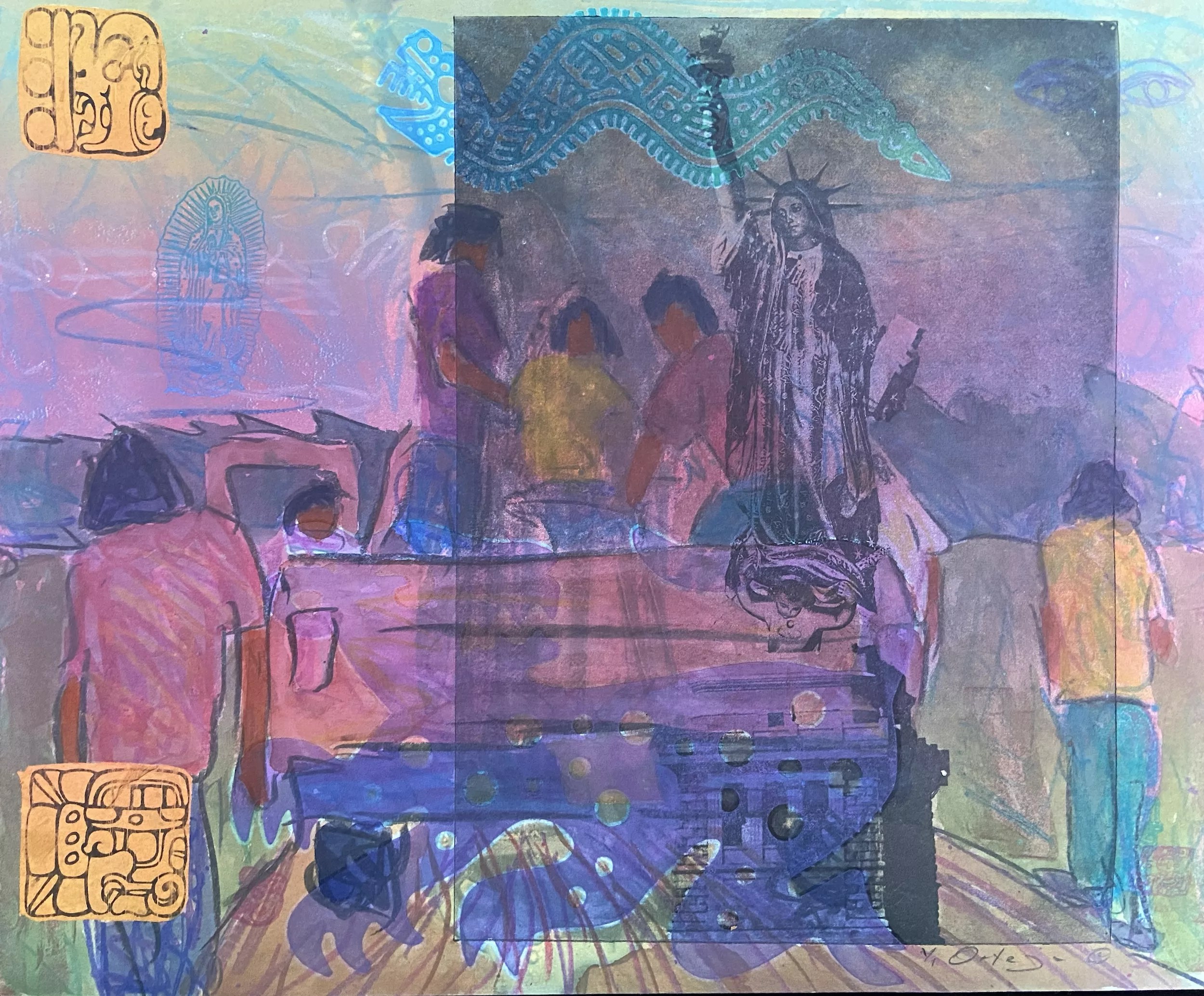 DAVA’s latest youth art-mentoring program took on Mo’Print’s ideals to work with young artists on print-related projects for different age groups. Their resulting works, including drypoints, collagraphs, foam prints and rubber-block prints, will be on view in the lobby. The Mirror Cracked is a curated Mo’Print group exhibition assembled by Paloma Jimenez and Genevieve Waller of the local art publication DARIA: Denver Art Review, Inquiry, and Analysis, with more sophisticated work inspired by symbolic visual languages by the all-star printmakers Mary Lynn Baird, Maddie Christian, Miriam Dubinsky, Rick Griffith, Laura Grossett, Georgia Luckiw, Dianna Miguez and Mami Yamamoto.