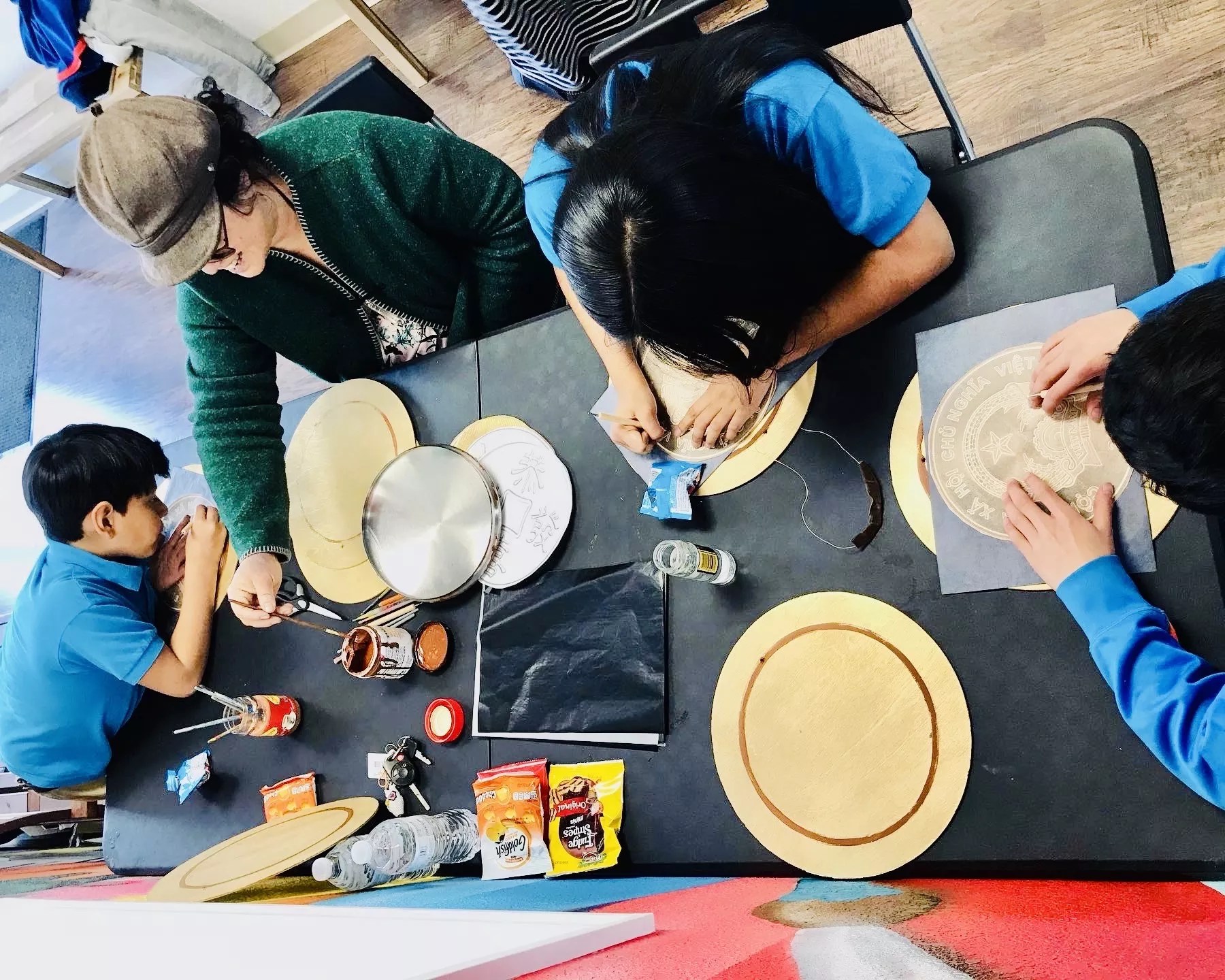 Mari Munet working with children from Westwood and the Boys and Girls Club during a Community Art Day in January.