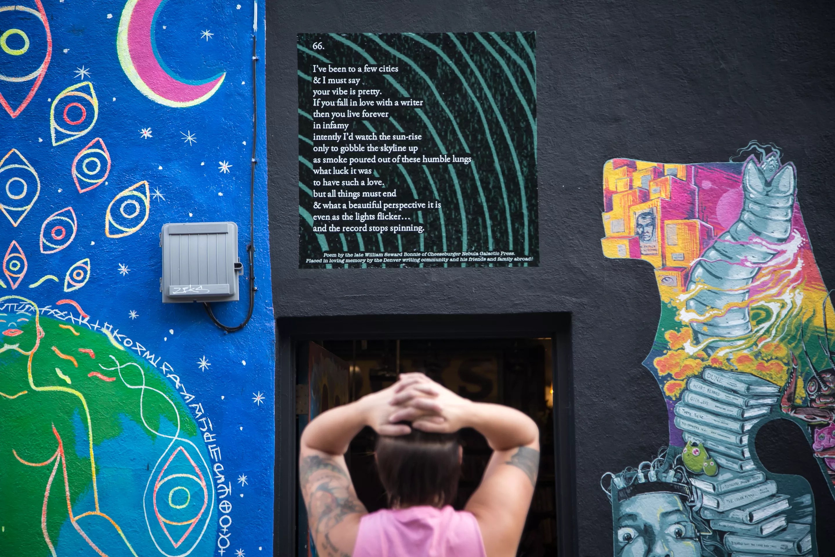 “I could see that his influence resonated with a lot of really cool, important young people,” Mutiny co-owner Jim Norris tells Westword. He says watching people squeegee a poem onto his establishment – where Bonnie had brought artists together – made him cry.