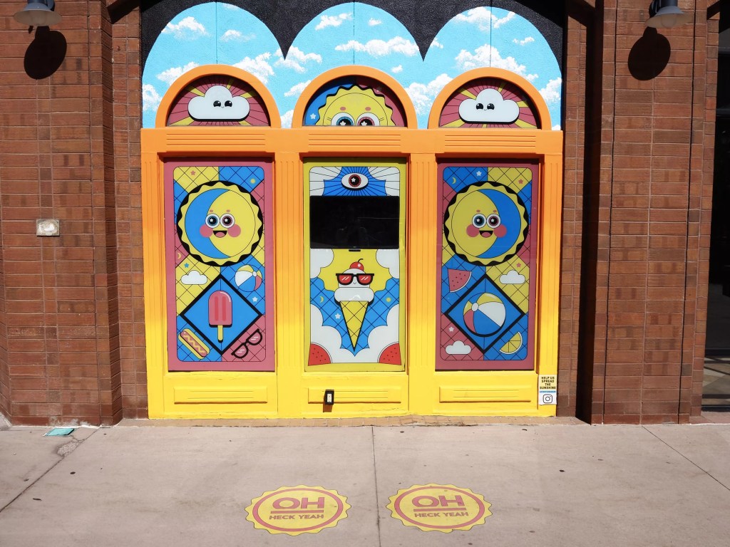 This summer, several artists activated vacant spaces around 16th Street with immersive art installations tributing various Denver neighborhoods. OhHeckYeah took a more macro-approach, taking inspiration from our love of the sun and outdoors for its project, “Fun in the Denver Sun.” In addition to sculptures and two interactive video games, the space features bright yellow, pink and blue murals of clouds, suns, ice cream and watermelon painted by artist George Bangs.