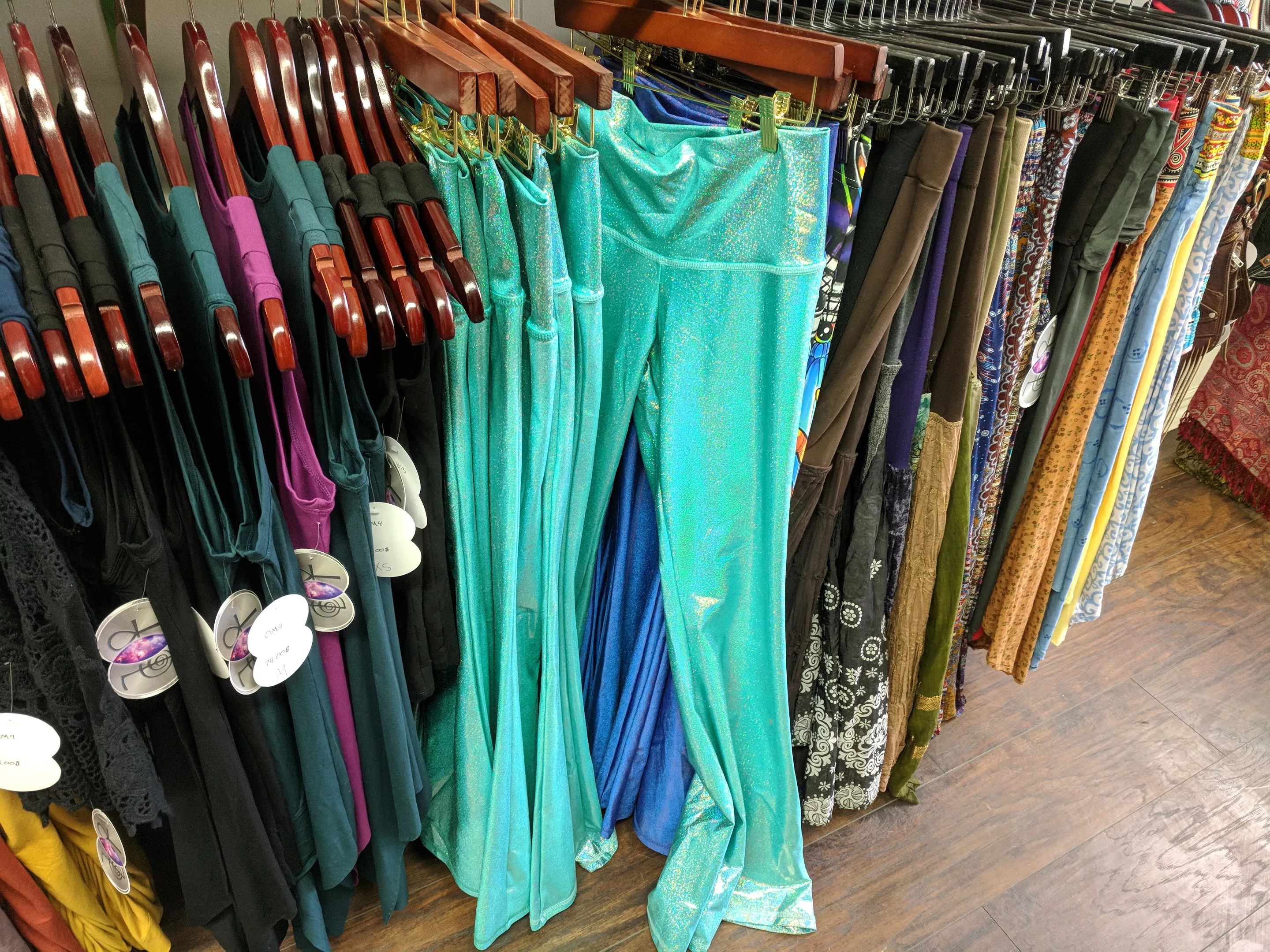 I have been in the festival scene for seven years. There is definitely a unique vibe of color spectrums and things that provide more comfort on a day-to-day basis. I also read New York Couture and things like that to get a feel of what is styling right now and what is about to be in style. Most of the artists we sell here are artists that I have gotten to know over the past seven years, and so during the time period when I was getting the store ready to open, we talked about what their style is now and what they feel is in style. We worked together to come up with what is in the store today.