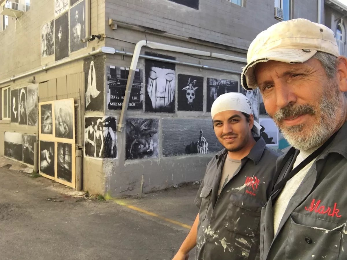 Sink and Amaury Orozco wheat-pasting at Crush Walls 2018.