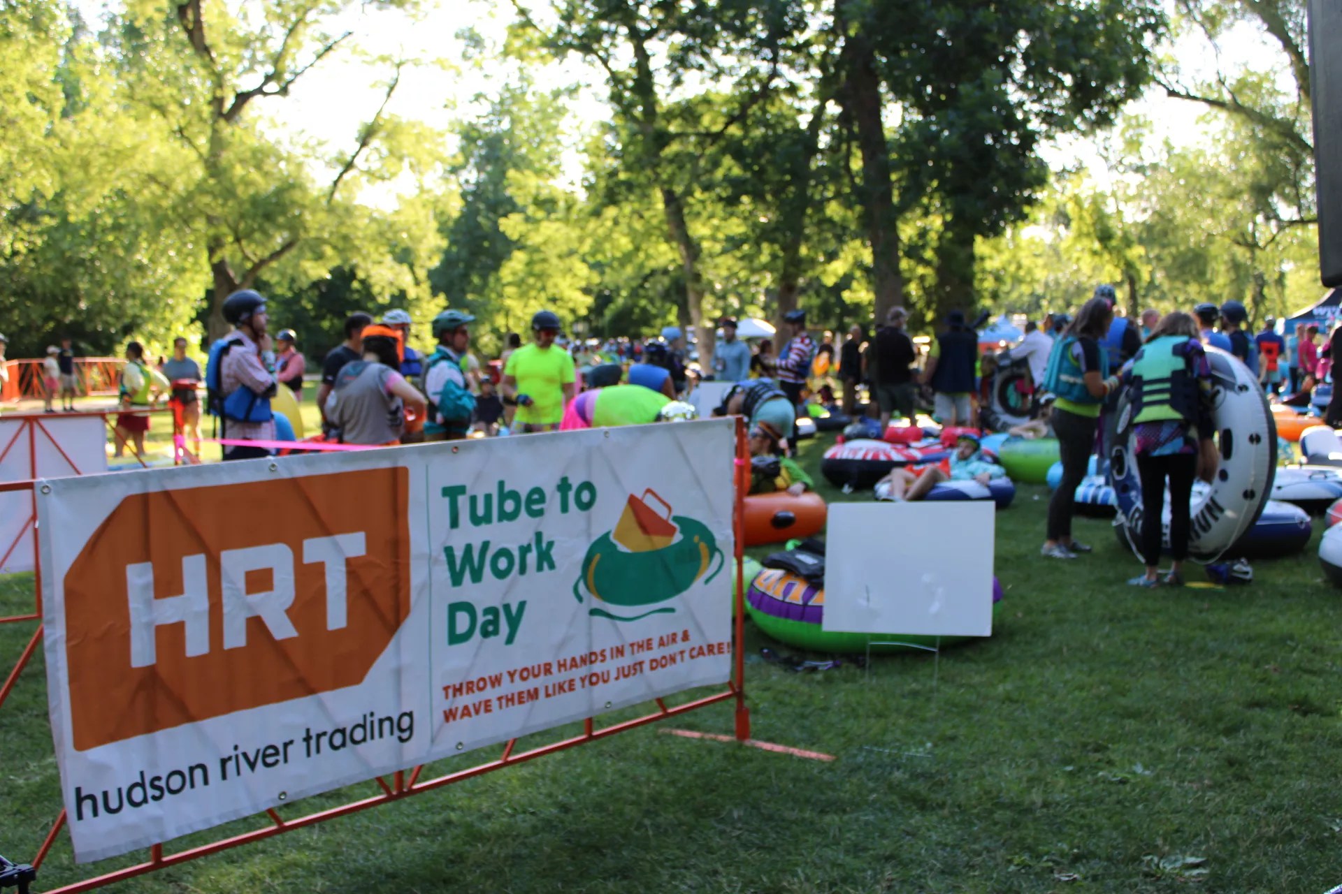 Before tubing began, Kagan surveyed the crowd, asking for a show of hands from newcomers, returning veterans and those who showed up with ten or more colleagues from their office. This year’s event had “record-setting” office participation.