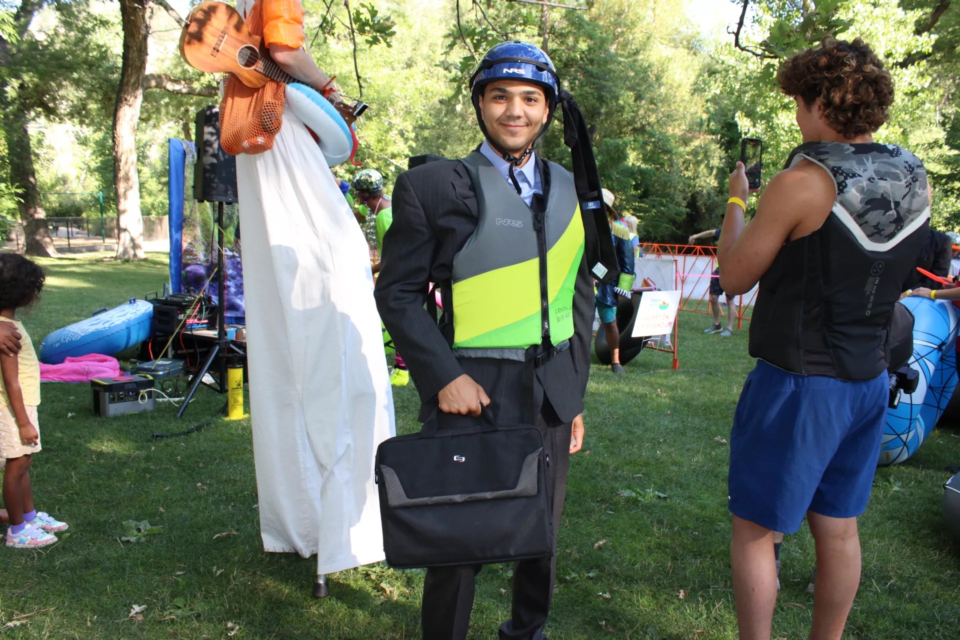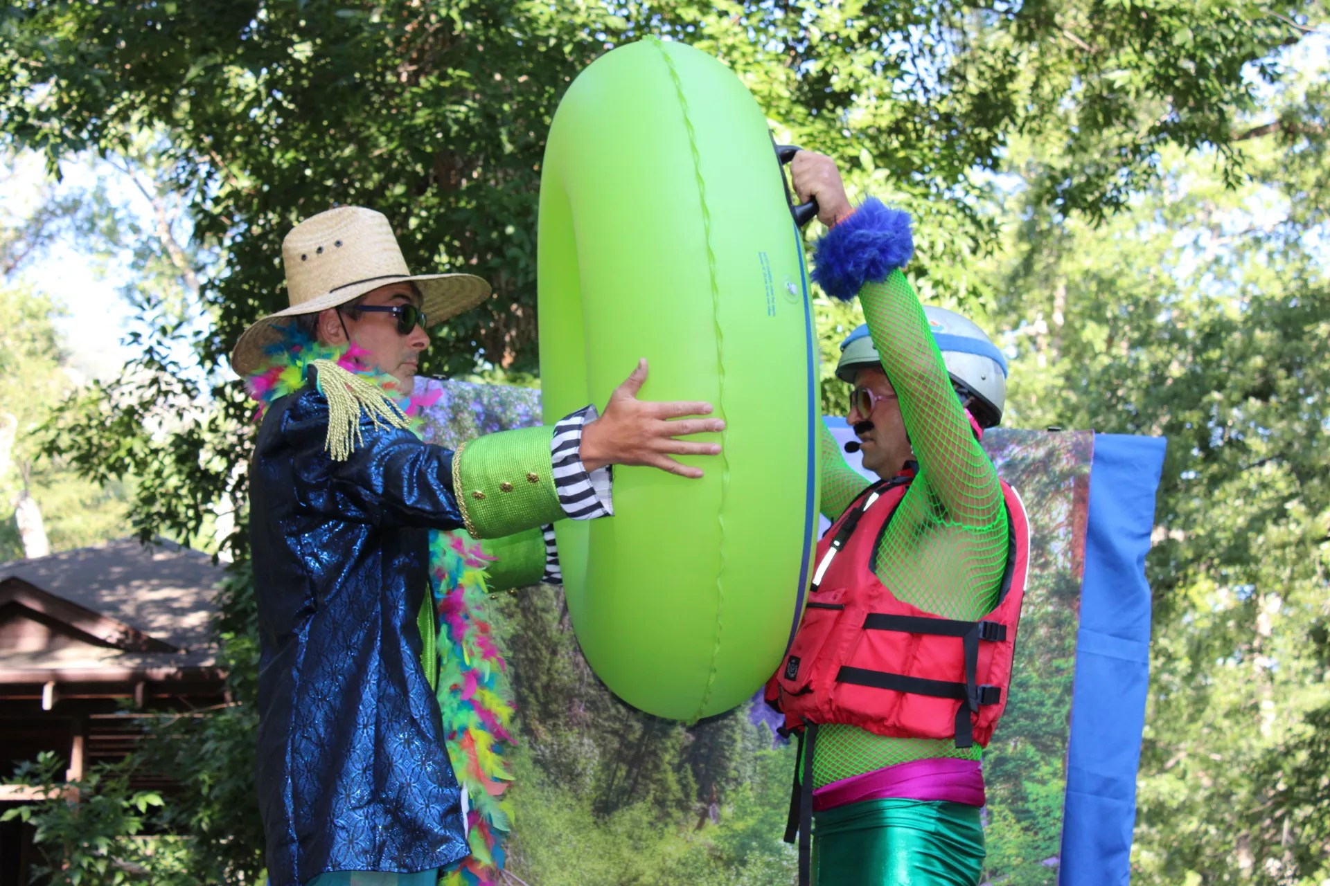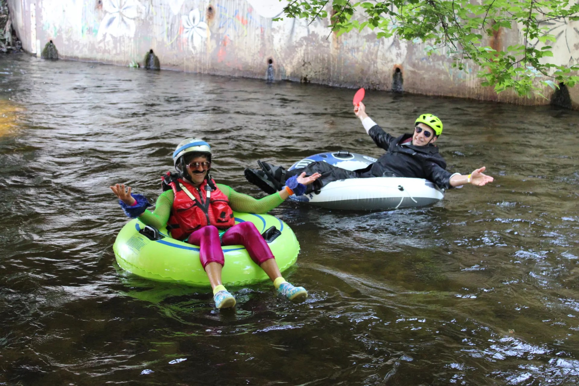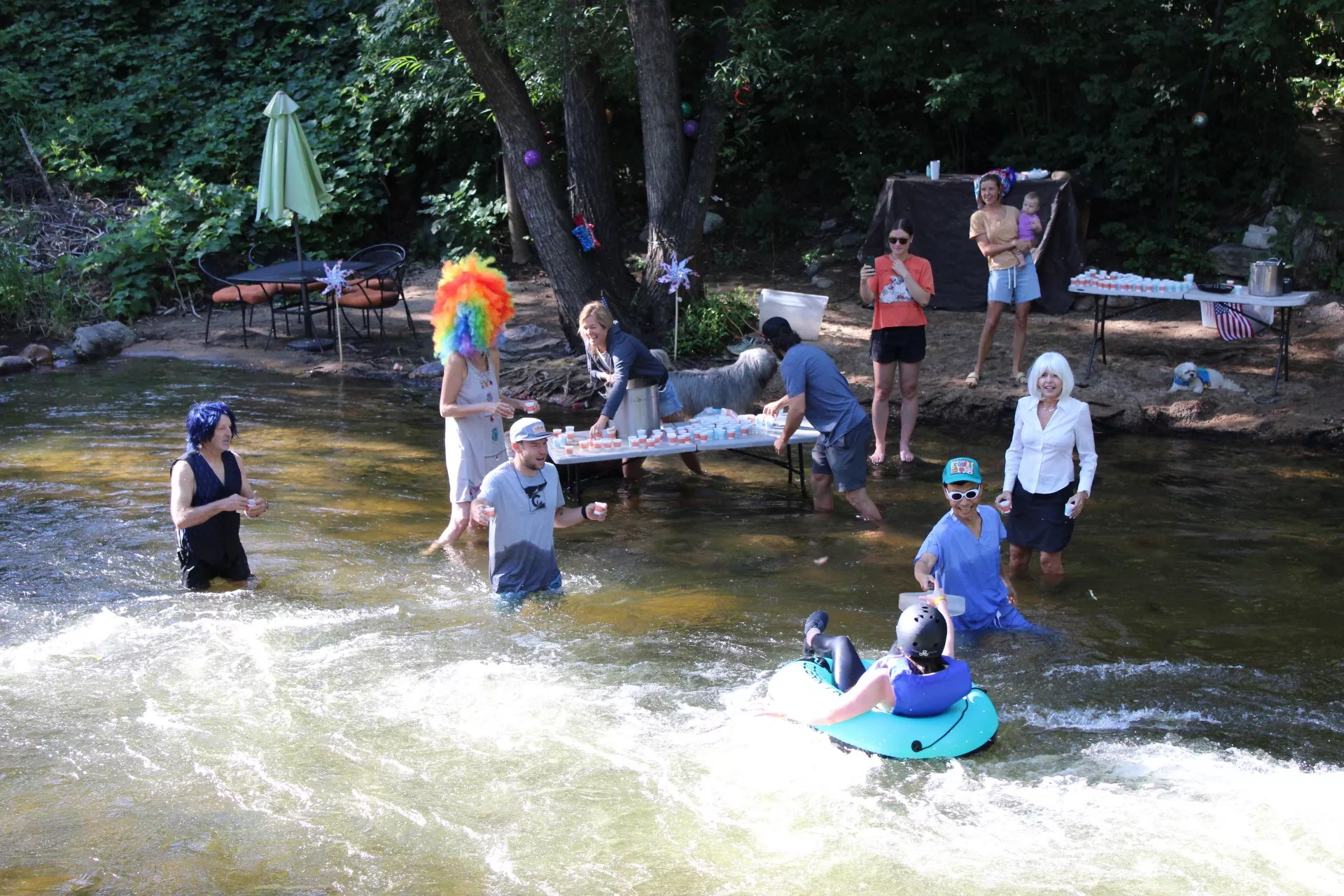 On July 11, hundreds of tubers in business attire and themed costumes got "weird, wet, and wild" floating down the local creek.