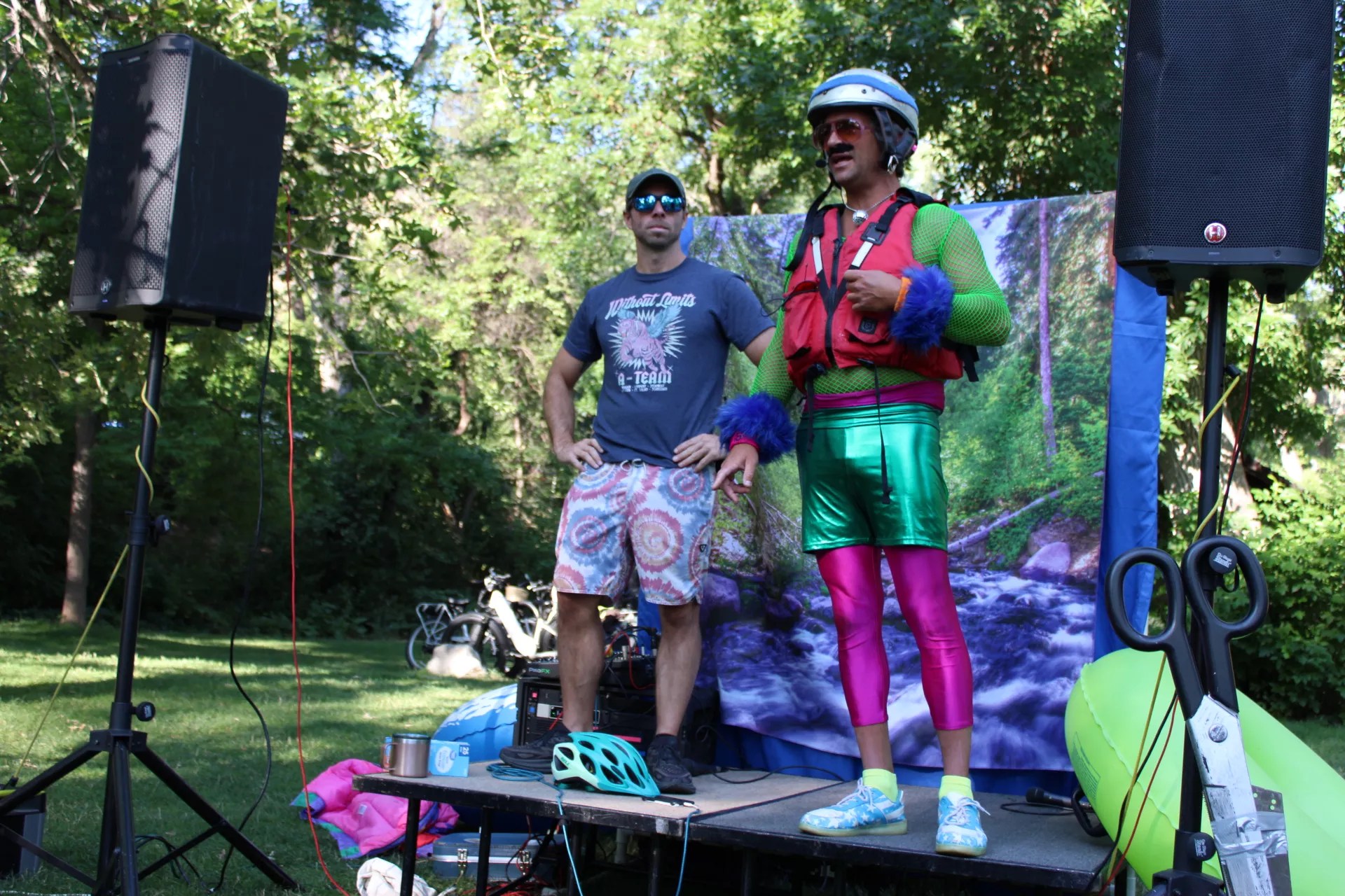 Then, for the first time in the event’s history, Kagan invited two “honored dignitaries” to the stage. “Please welcome to the stage our first dignitary, a devoted advocate to alternative transportation, your City of Boulder Councilmember, Mr. Ryan Schuchard,” Kagan announced. “And making his first appearance ever at Tube to Work Day, our beloved United States Colorado Congressman, give it up for Joe Neguse.”