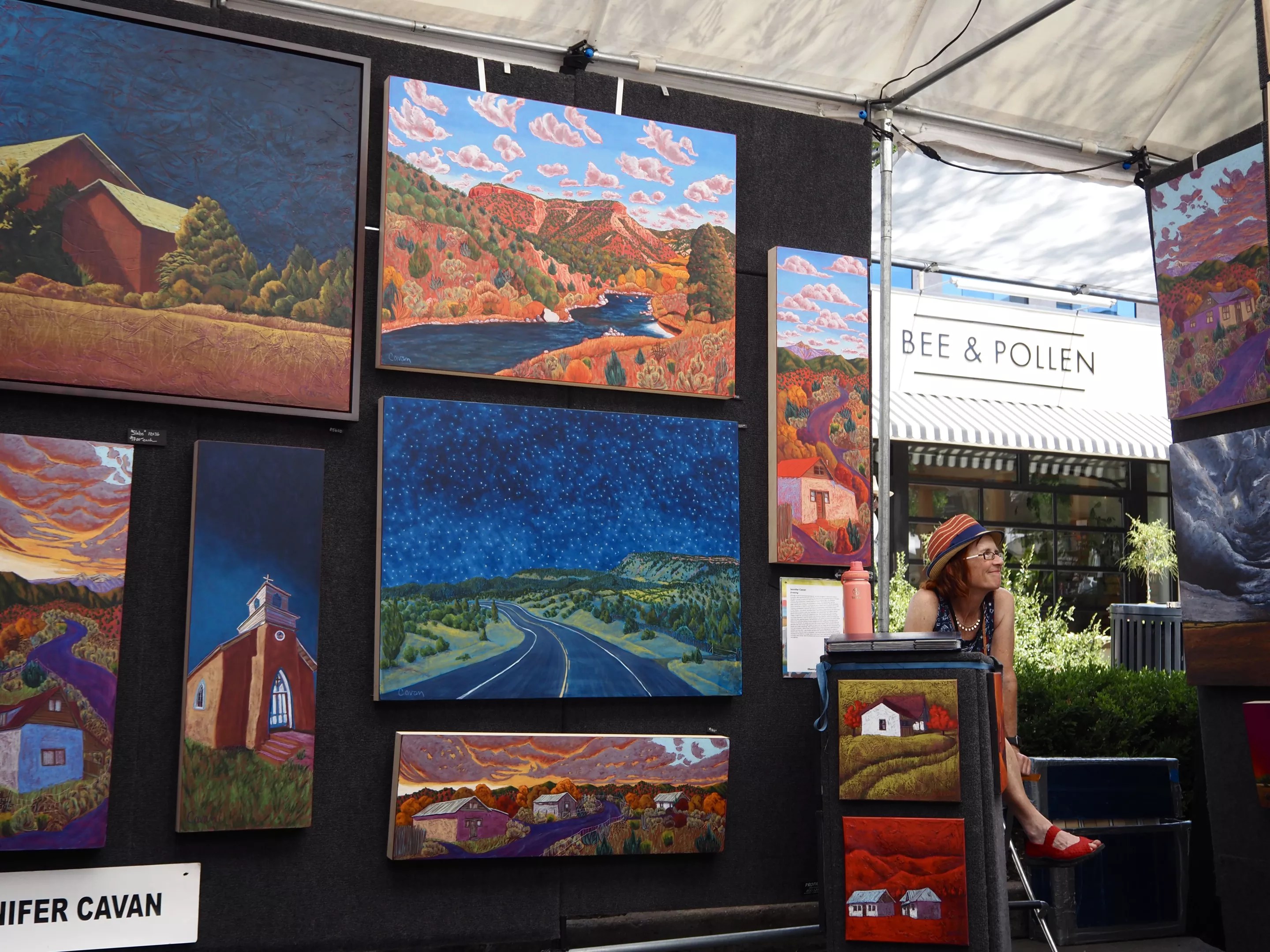 Artist Jennifer Caravan and her colorful paintings.