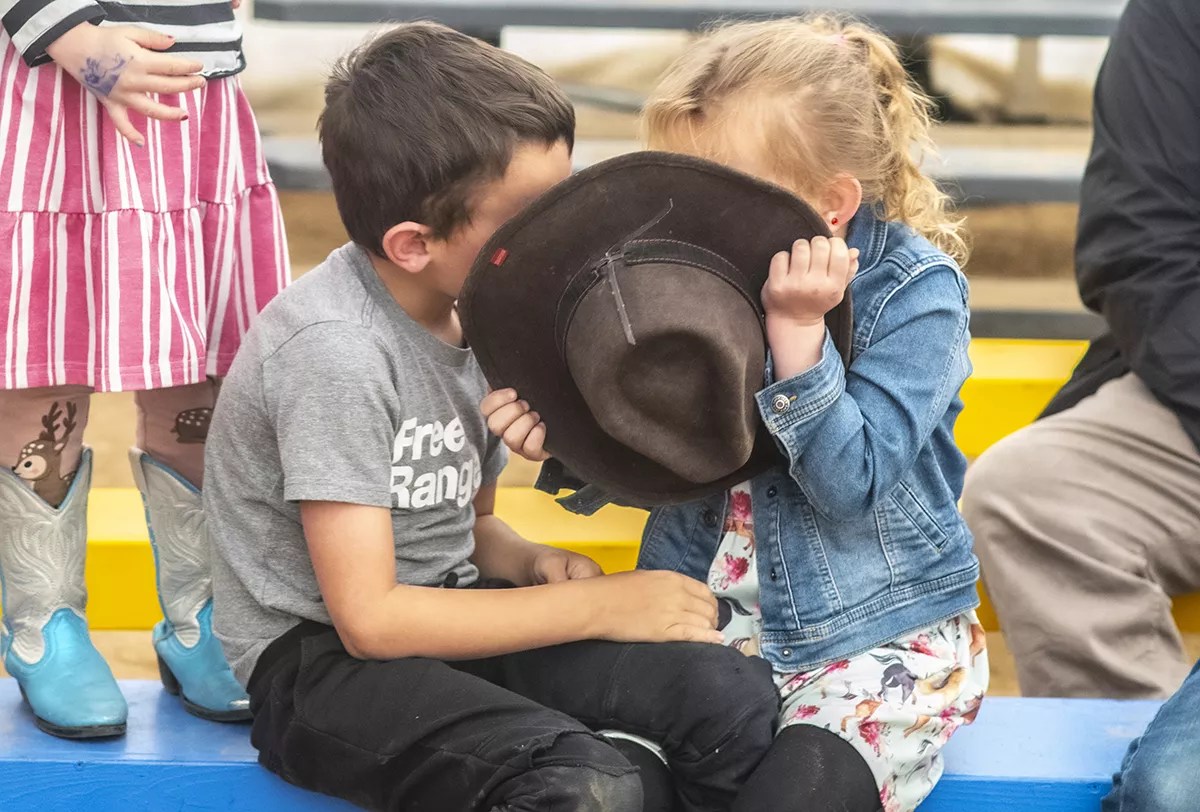 Two buckaroos share a secret at the first weekend of the Stock Show.