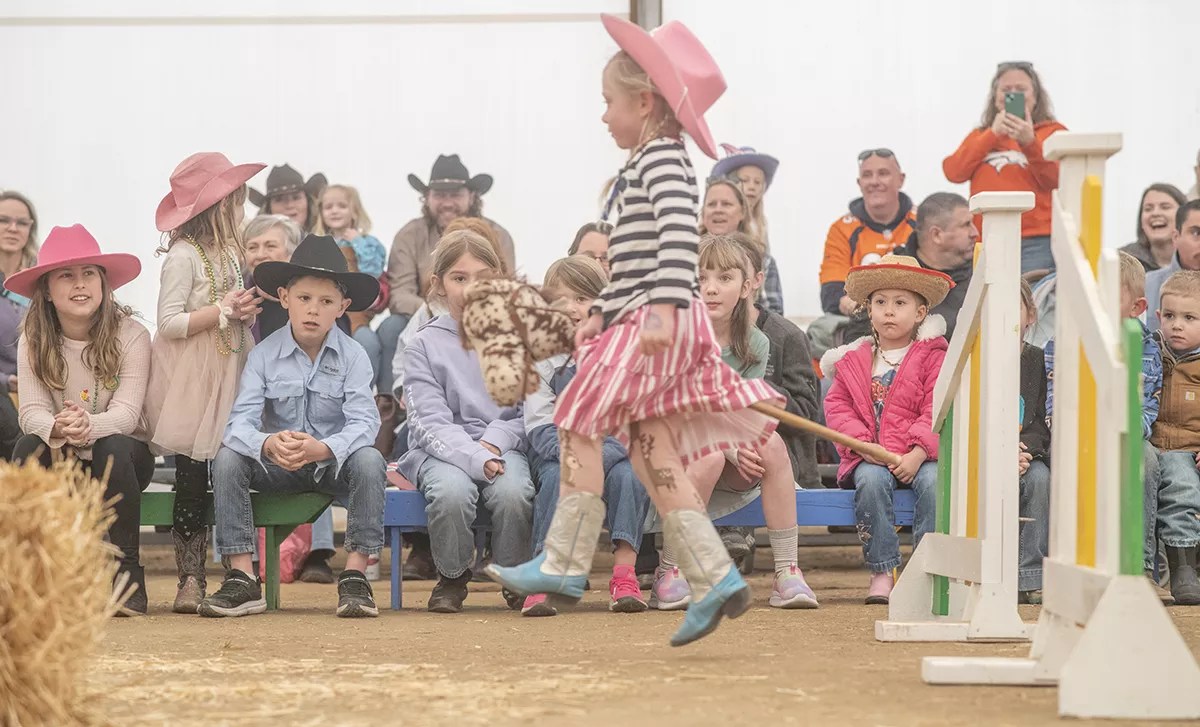 Six-year-old Lila Caputo of Brighton demonstrates her skills during the “stick horse” Grand Prix.