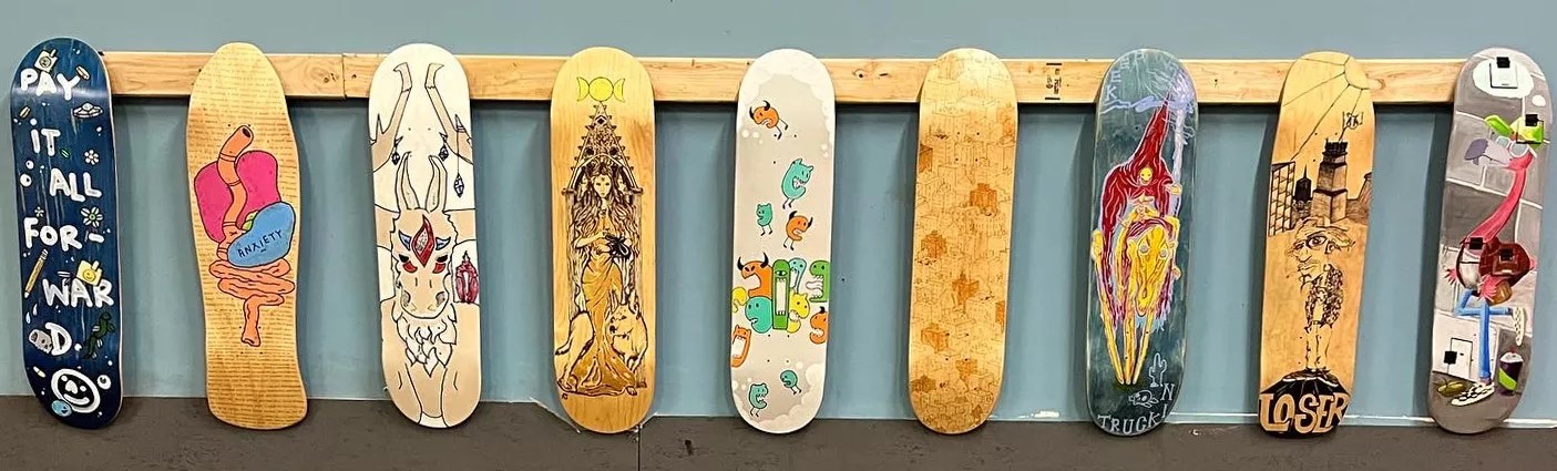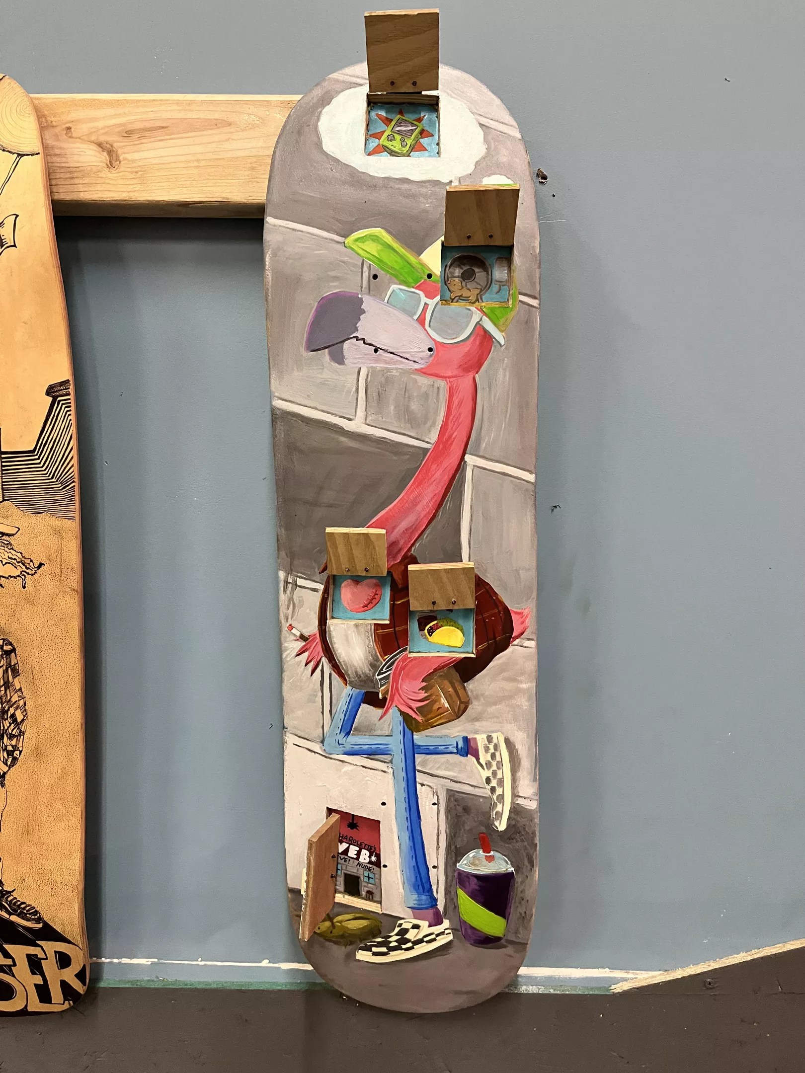 When Denver artist and skater Kyle Garlock found himself with a pile of trashed skateboard decks at the beginning of last year, an idea was born: Rather than let the chipped and cracked boards go to the landfill, why not repurpose them into canvases for artists to experiment with?