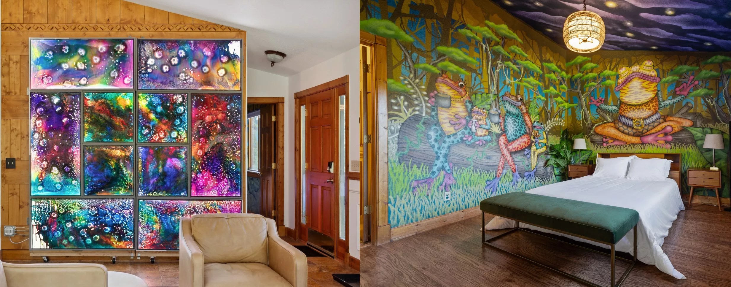 The living room Light Wall (L) and the Jungle Room (R)