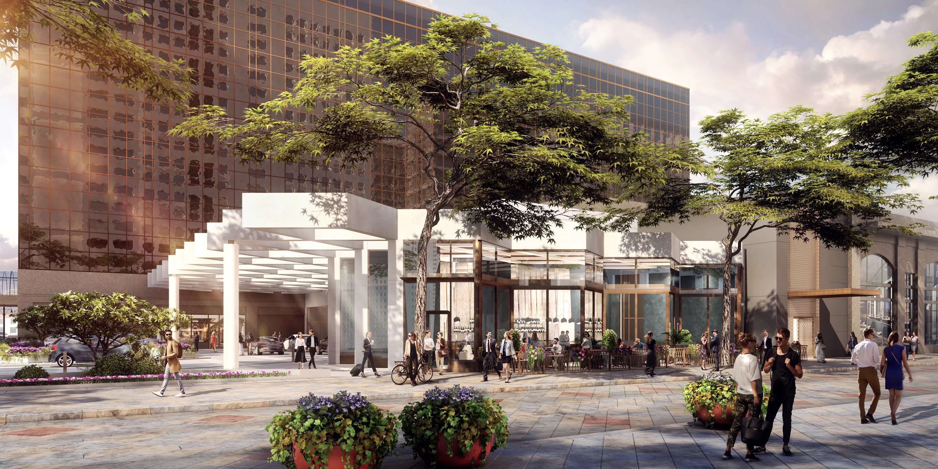 At least the hotel’s new owners recognize Pei’s contributions that remain downtown, including the 16th Street Mall designed by the firm of I.M. Pei and Partners in collaboration with Hanna/Olin (now called OLIN). “Drawing inspiration from the grandeur and light of I.M. Pei’s original design, the new porte-cochere, lobby entry, and signature bar create a striking statement at the east end of 16th Street Mall,” the project announcement proclaims.